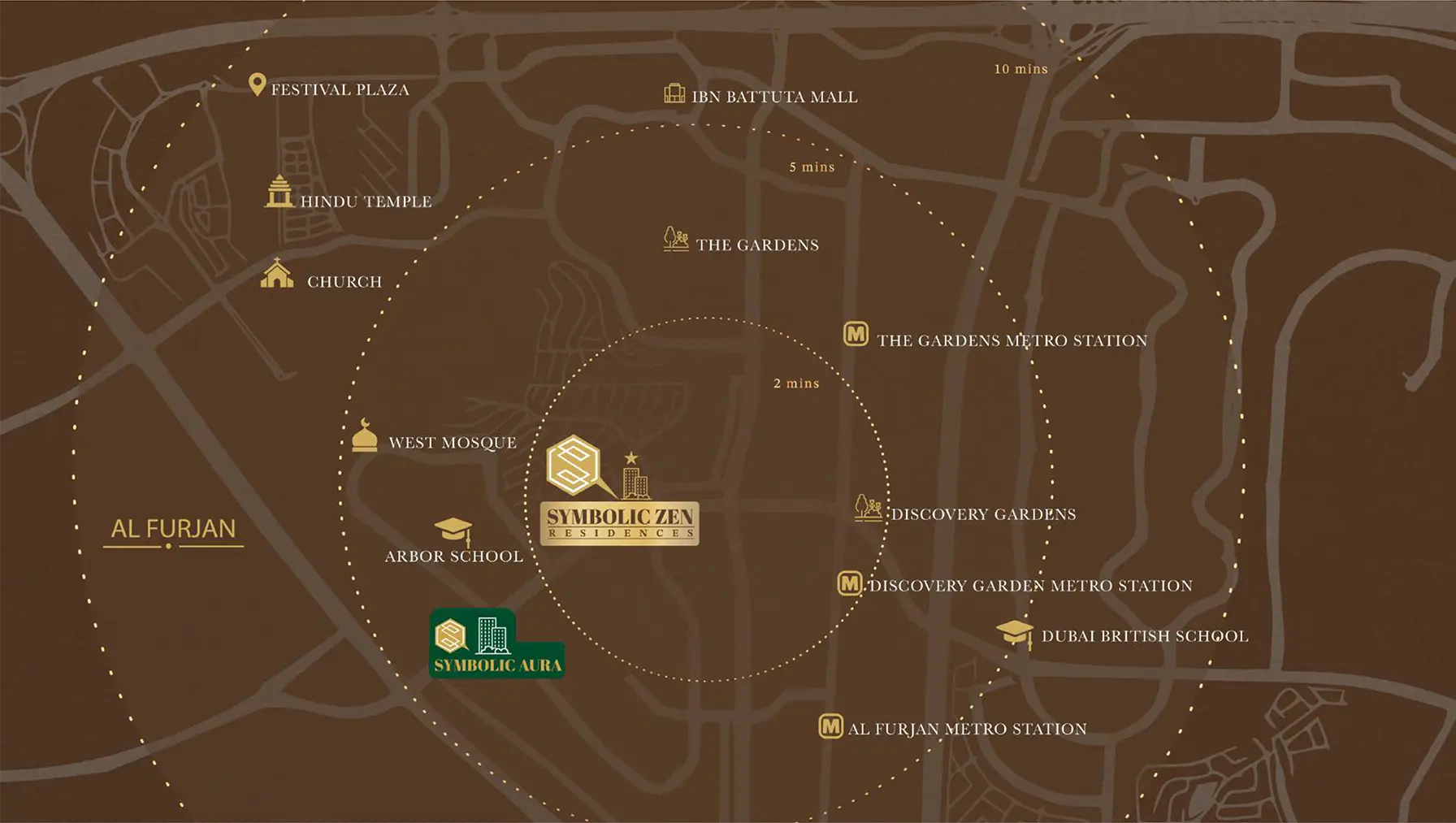 The master plan of Symbolic Zen Residences is crafted by Symbolic Developments to offer a high-rise residential property within Al Furjan area. The development is designed with contemporary architecture and built by using premium interiors, quality finishes, smart home technology along with security systems. It is located within the vibrant Jabel Ali District of Dubai and having proximity to multiple residential and commercial properties along with shopping malls, dining facilities, retail shops, schools and health care centers. The property is built with self-sustainable features and premium amenities such as swimming pool, fitness center, yoga space, kids play area, jogging and running trails.