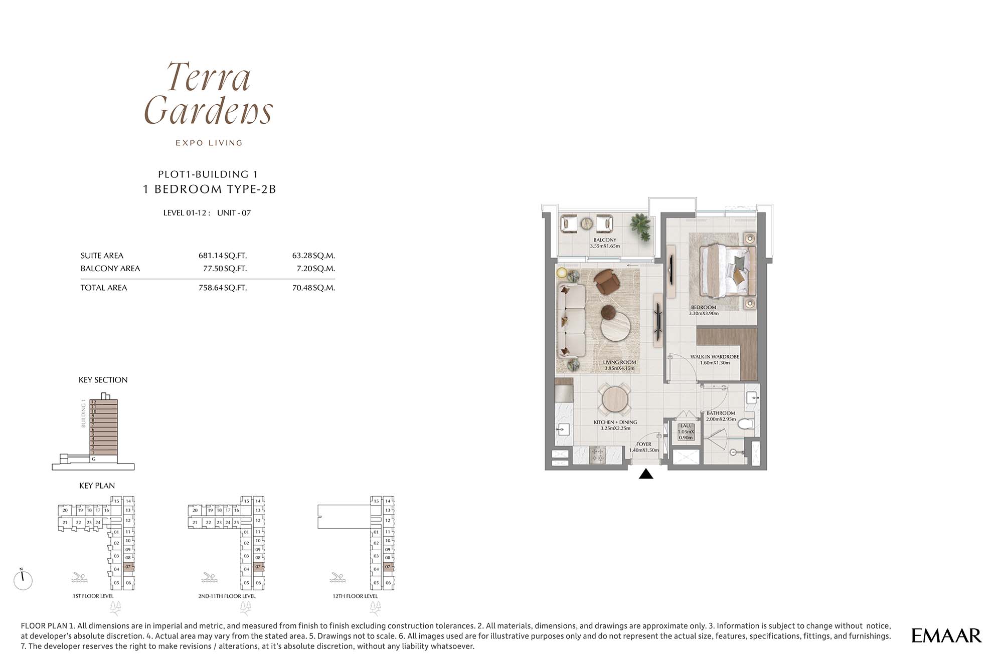 | Buildings 1 | 1 Bedroom | 1st-12th Level Unit-07 (Type-2B) | 758.64 Sq Ft | Apartments |