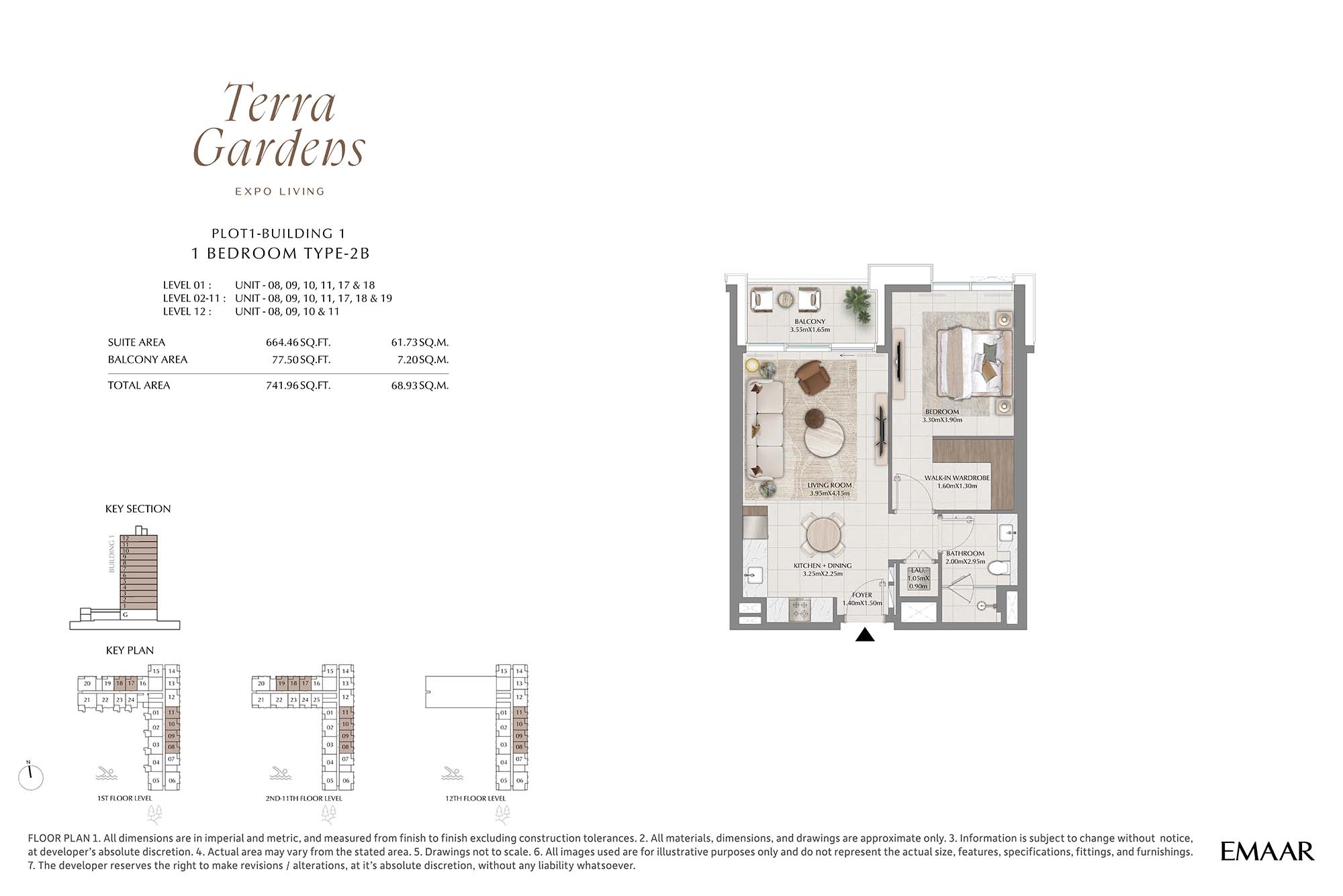 | Buildings 1 | 1 Bedroom | 1st-12th Level Unit-08-19 (Type-2B) | 741.96 Sq Ft | Apartments |