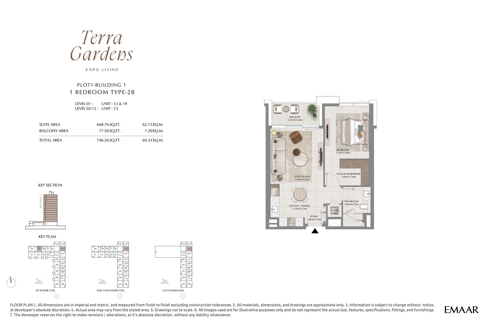 | Buildings 1 | 1 Bedroom | 1st-12th Level Unit-13-19 (Type-2B) | 746.26 Sq Ft | Apartments |