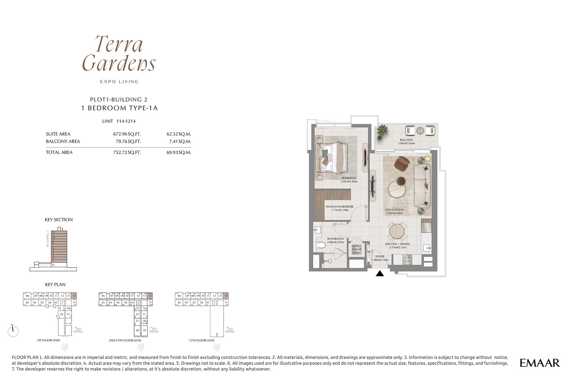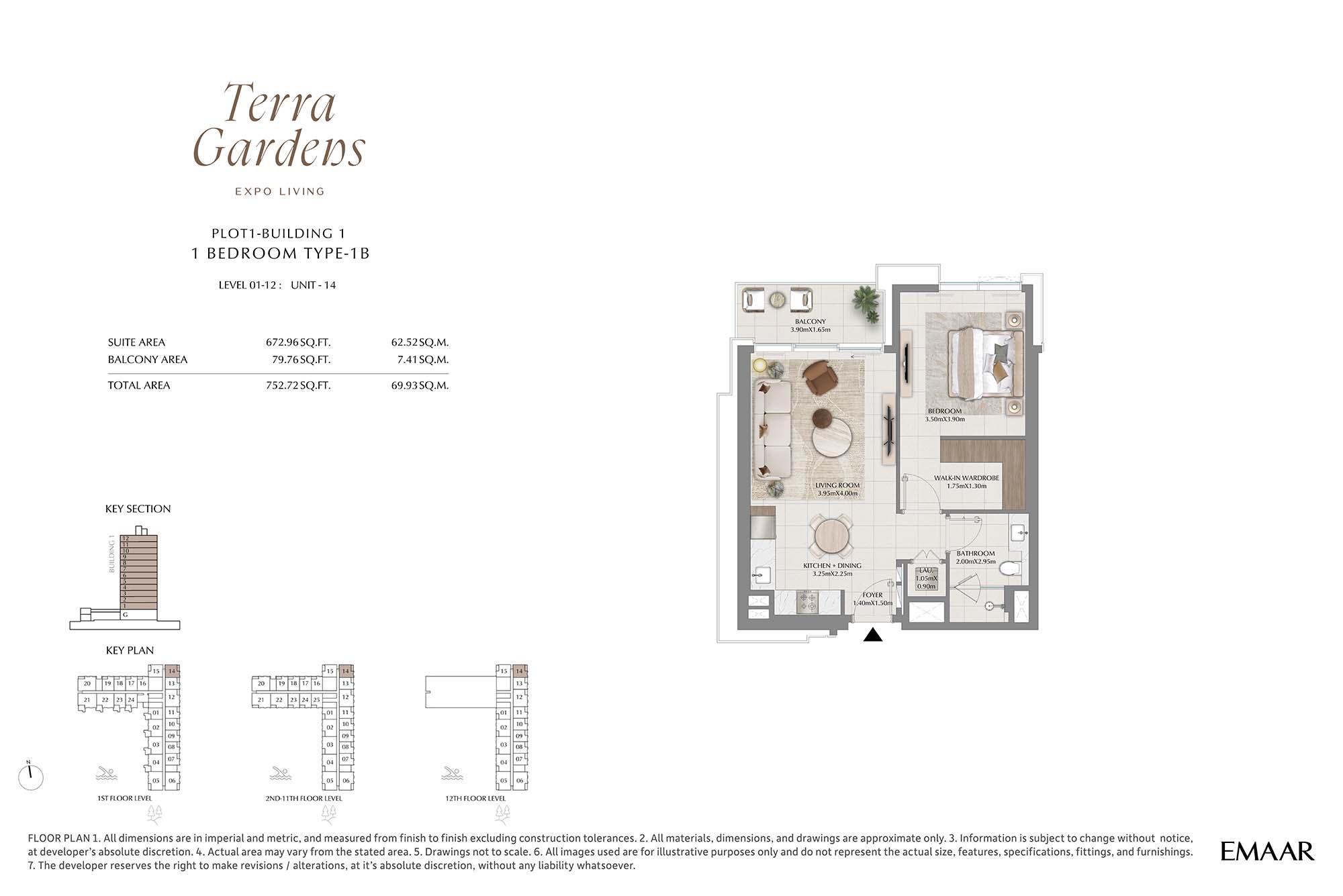 | Buildings 1 | 1 Bedroom | 1st-12th Level Unit-14 (Type-1B) | 752.72 Sq Ft | Apartments |