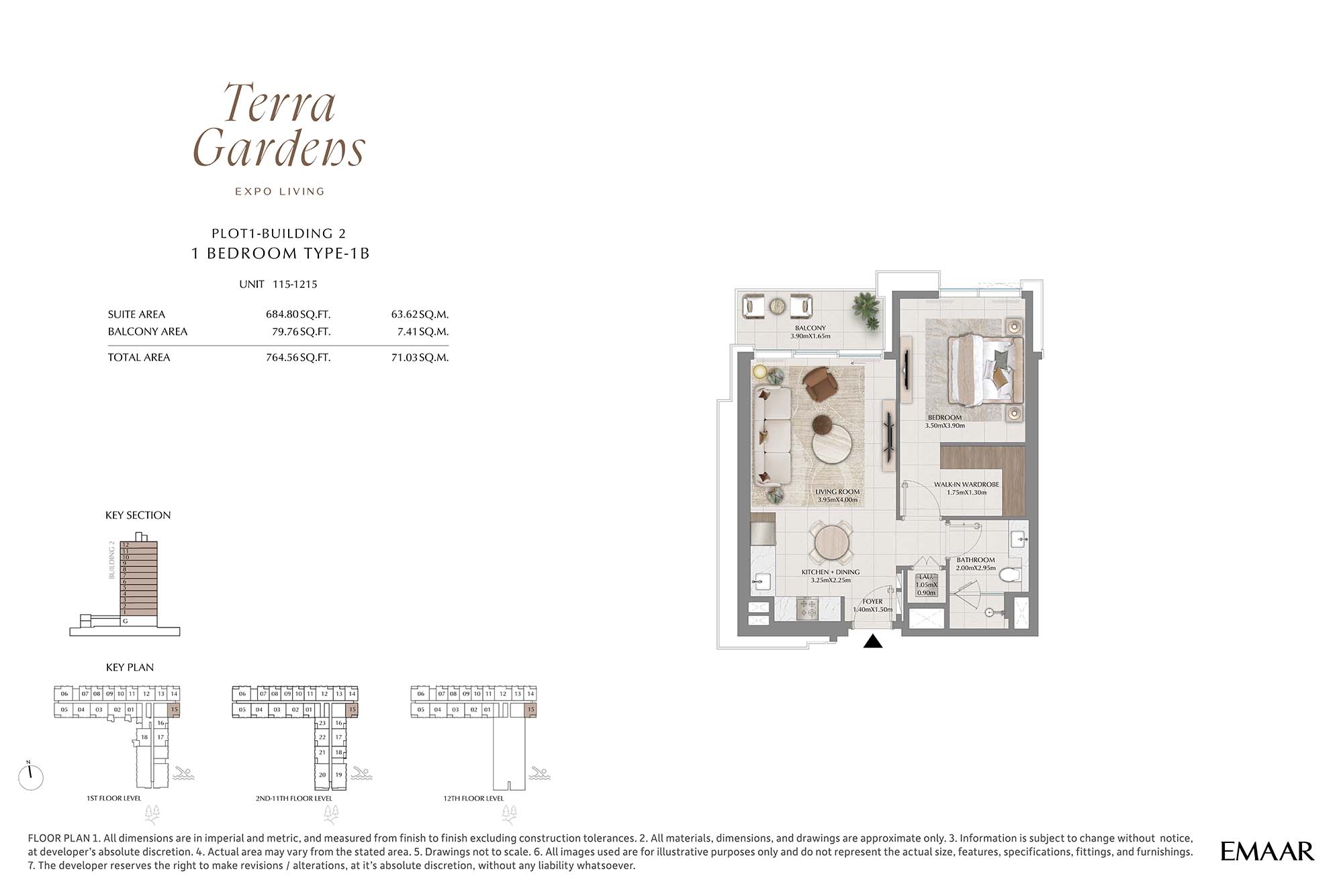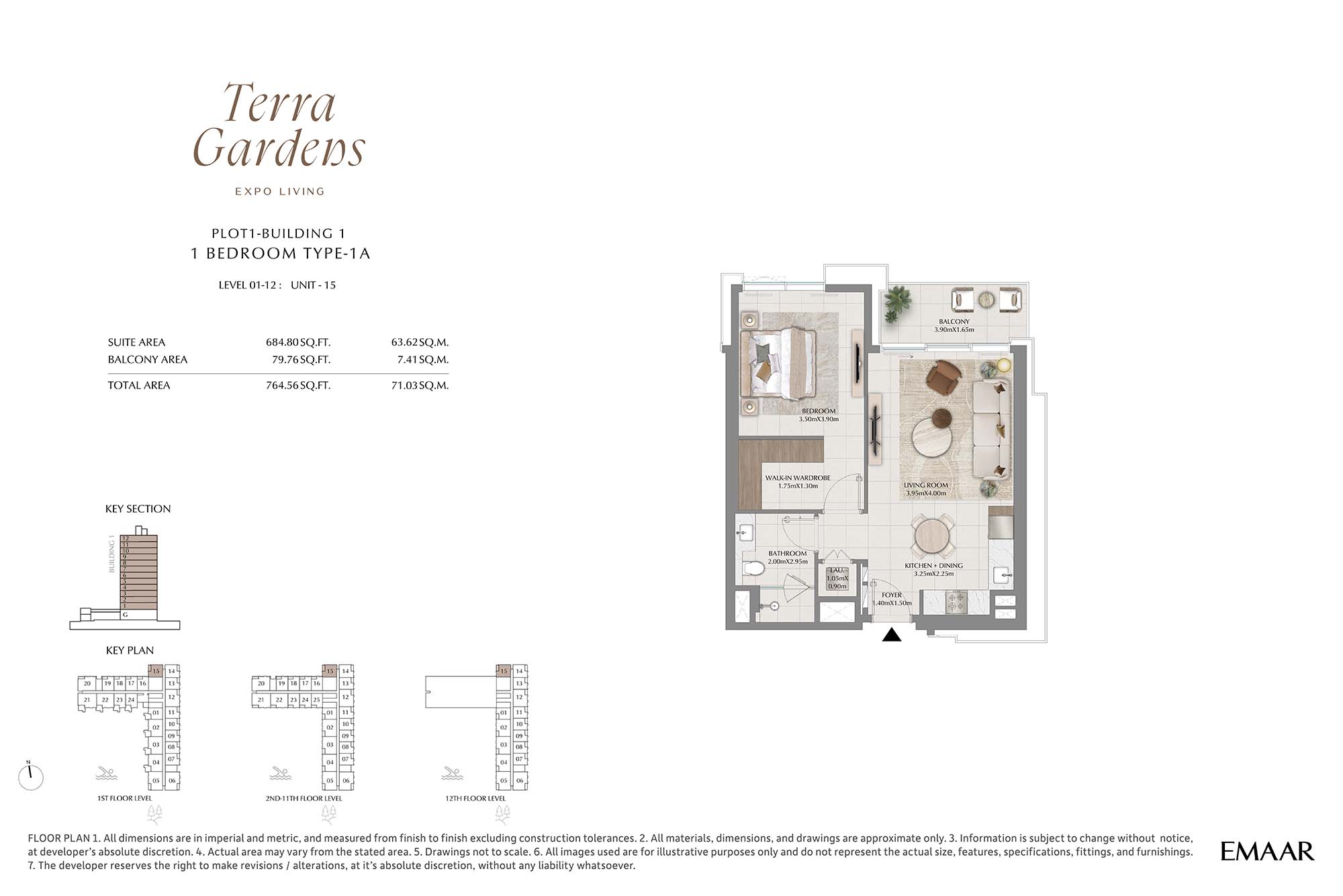 | Buildings 1 | 1 Bedroom | 1st-12th Level Unit-15 (Type-1A) | 764.56 Sq Ft | Apartments |