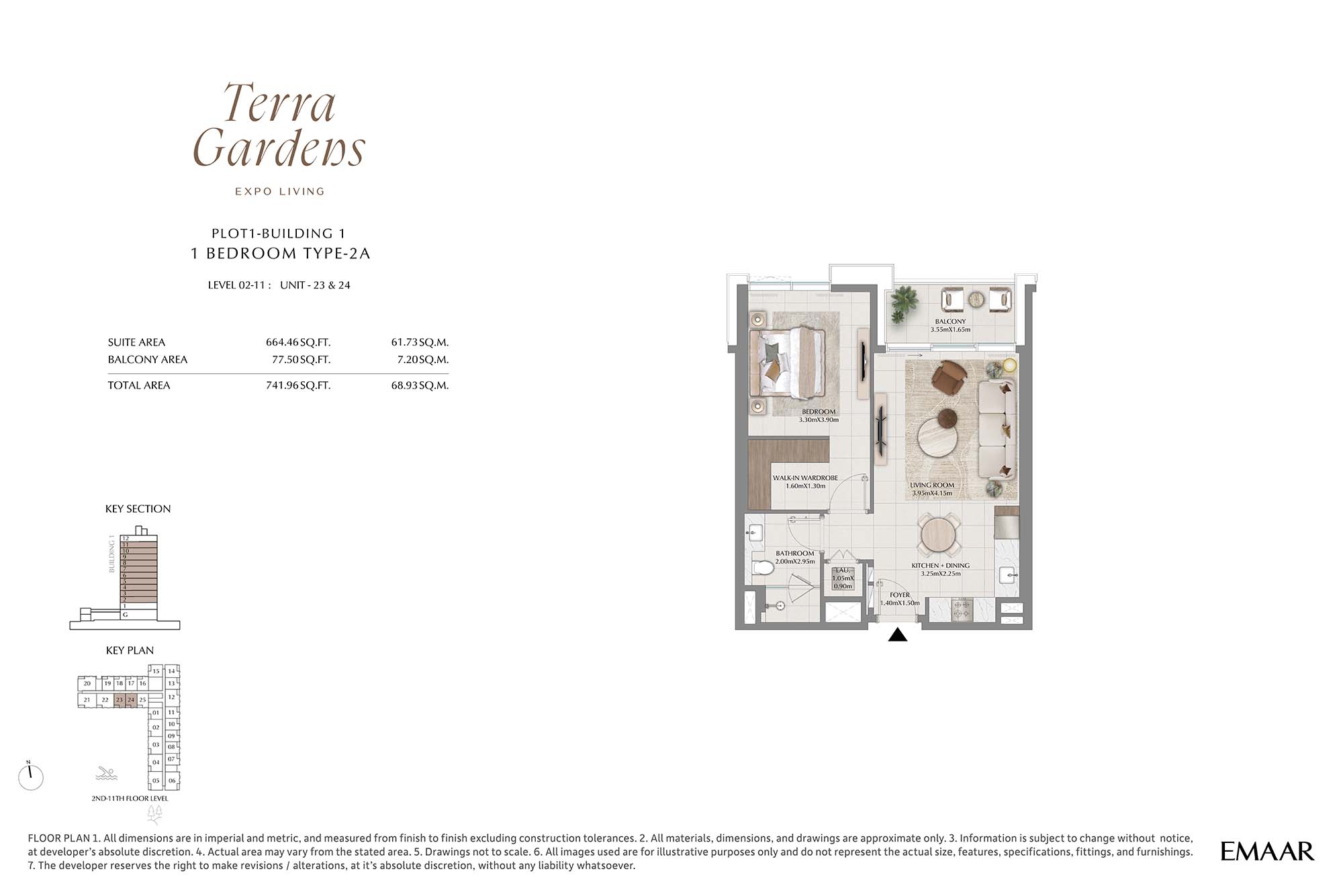 | Buildings 1 | 1 Bedroom | 2nd-11th Level Unit-23 & 24 (Type-2A) | 741.96 Sq Ft | Apartments |