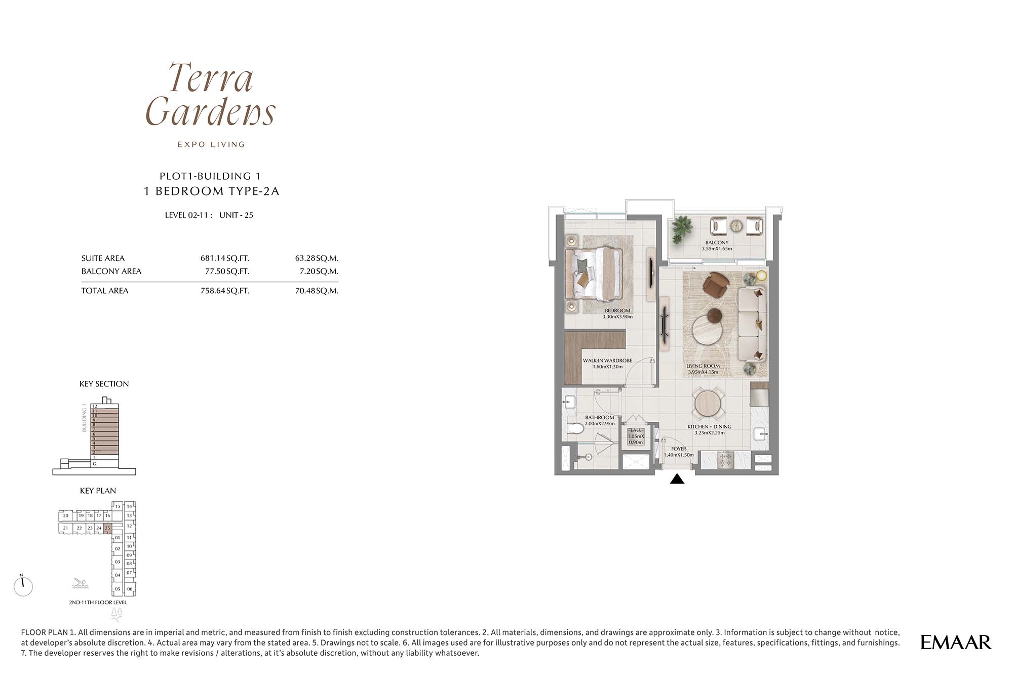 | Buildings 1 | 1 Bedroom | 2nd-11th Level Unit-25 (Type-2A) | 758.64 Sq Ft | Apartments |