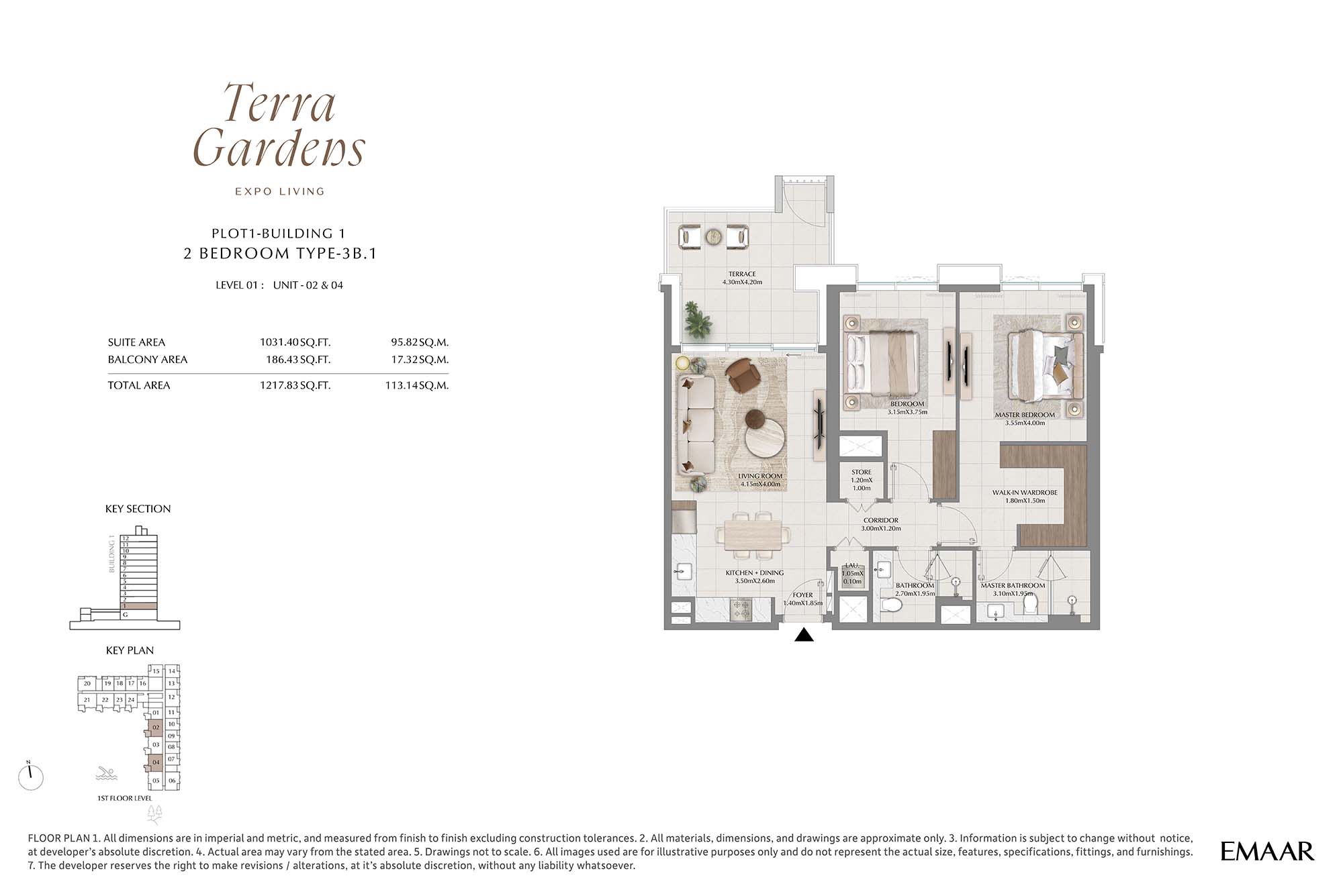 | Buildings 1 | 2 Bedrooms | 1st Level Unit-02 & 04 (Type-3B.1) | 1217.83 Sq Ft | Apartments |