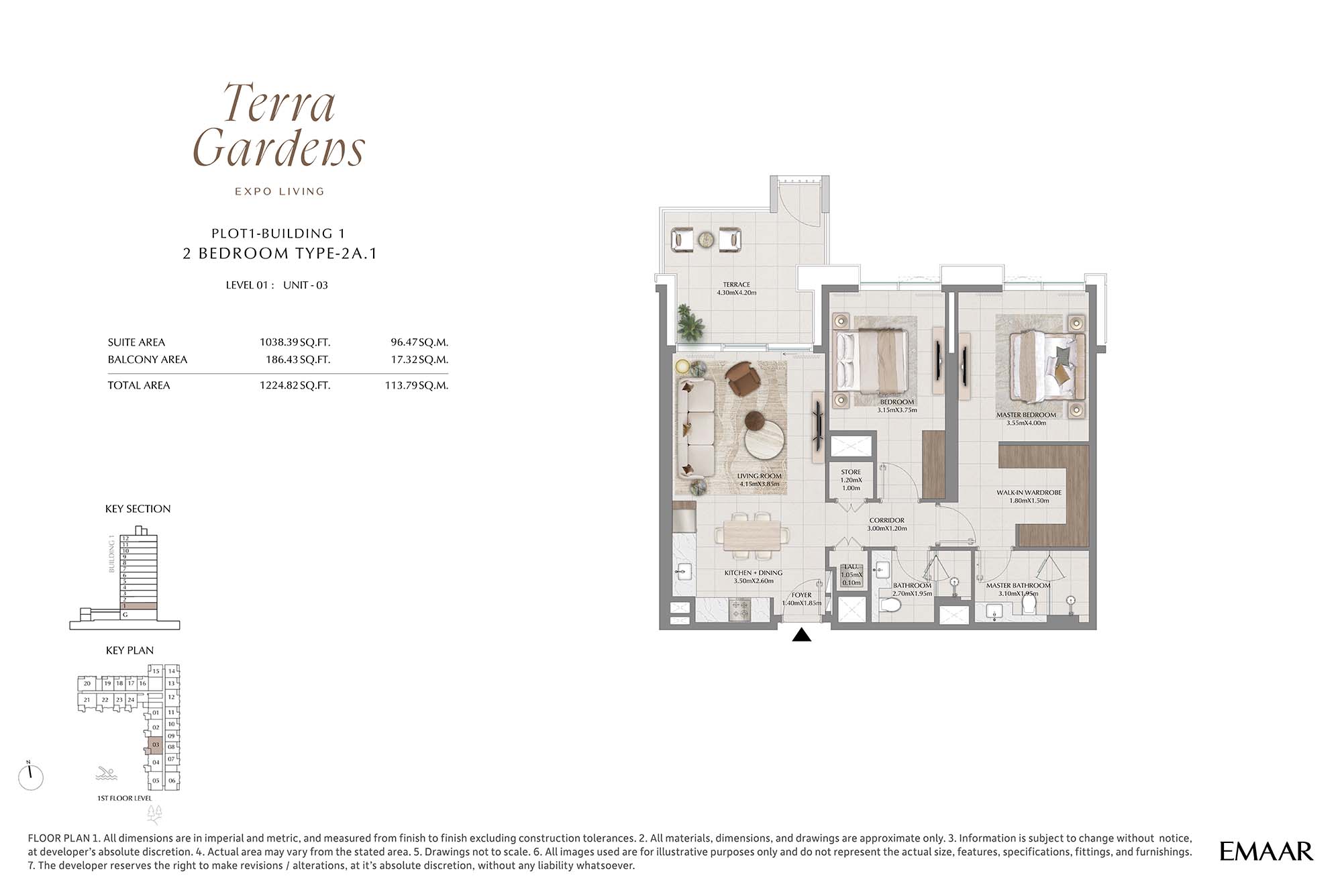 | Buildings 1 | 2 Bedrooms | 1st Level Unit-03 (Type-2A.1) | 1224.82 Sq Ft | Apartments |