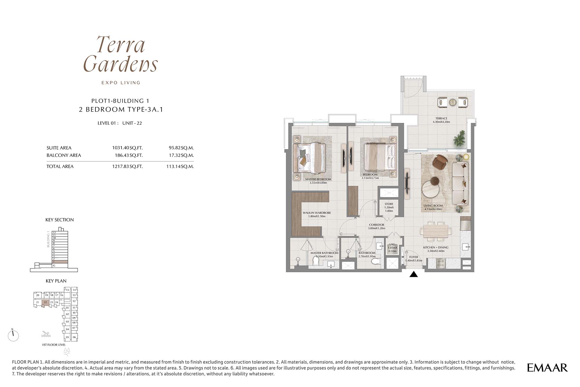 | Buildings 1 | 2 Bedrooms | 1st Level Unit-22 (Type-3A.1) | 1217.83 Sq Ft | Apartments |