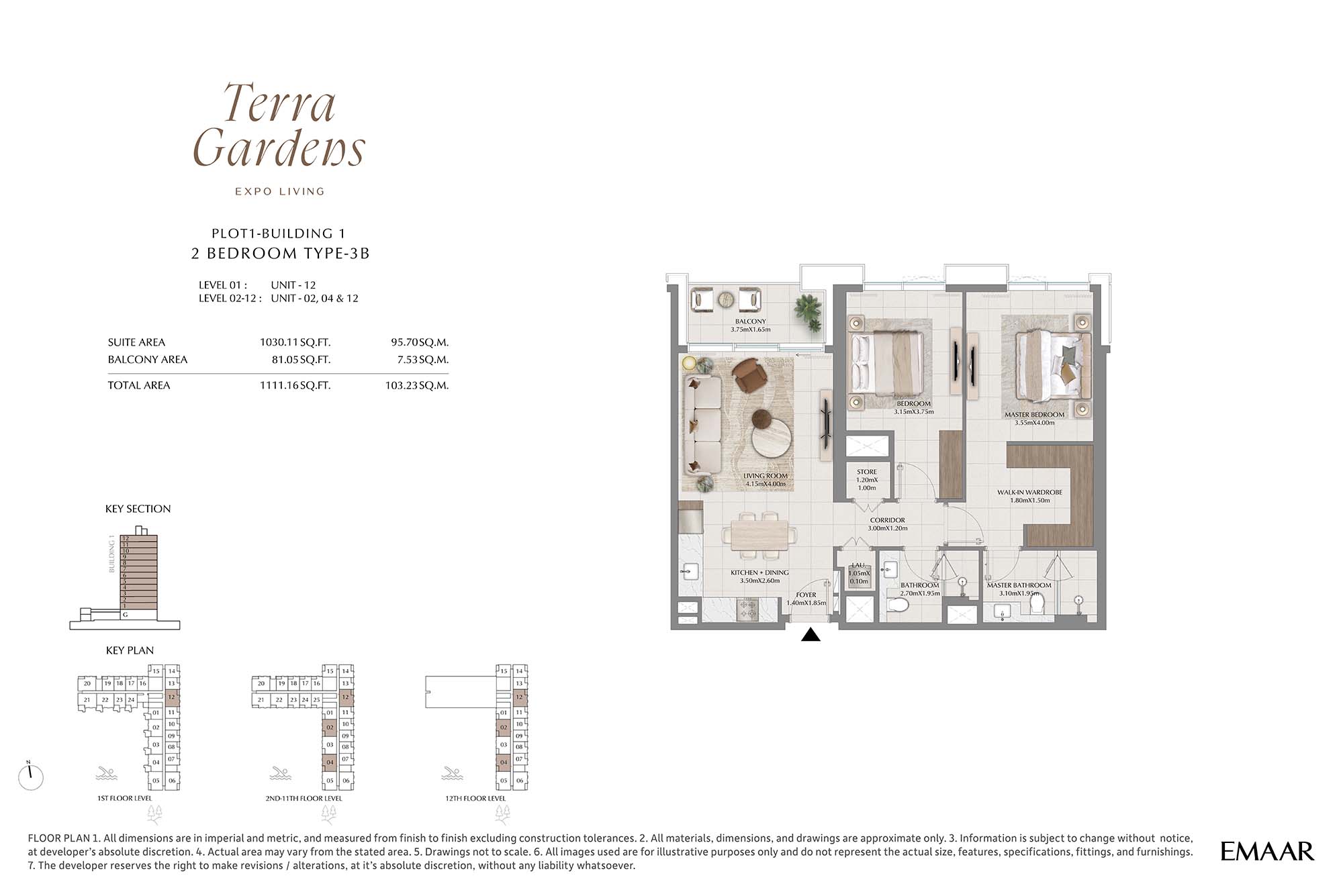 | Buildings 1 | 2 Bedrooms | 1st-12th Level Unit-02-12 (Type-3B) | 1111.16 Sq Ft | Apartments |