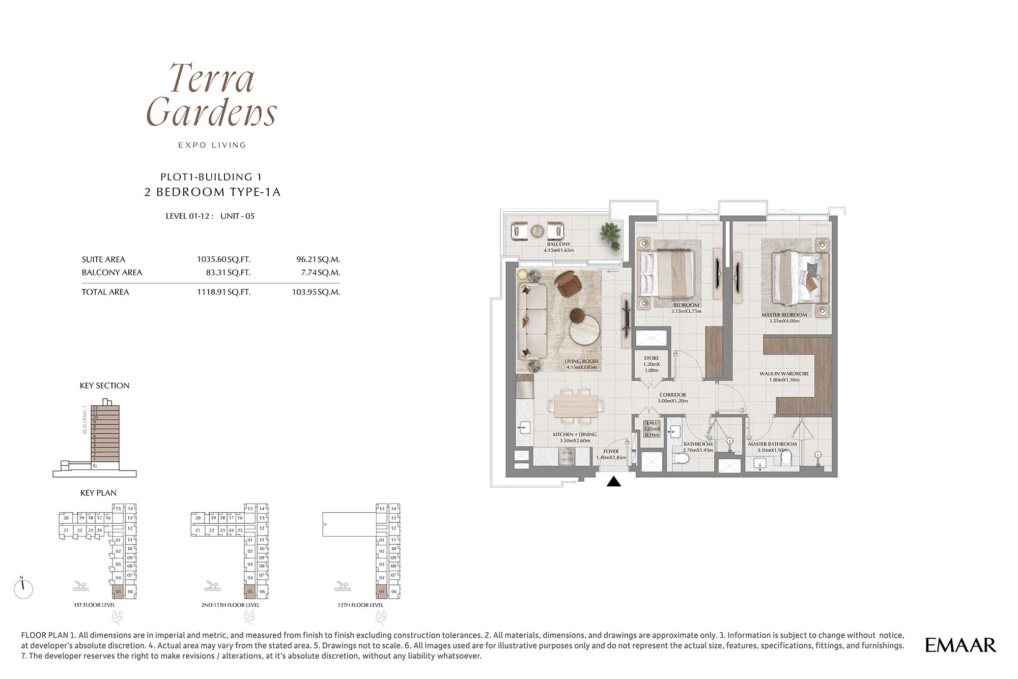 | Buildings 1 | 2 Bedrooms | 1st-12th Level Unit-05 (Type-1A) | 1118.91 Sq Ft | Apartments |