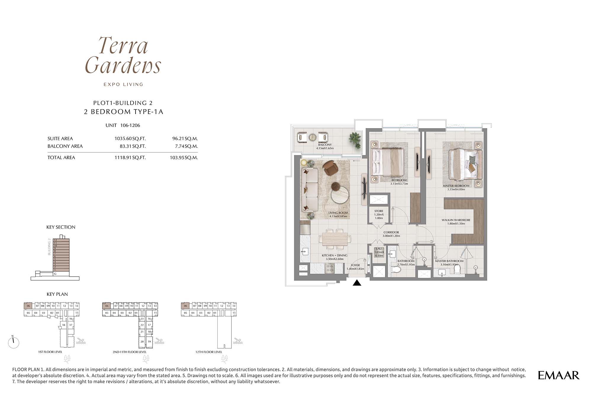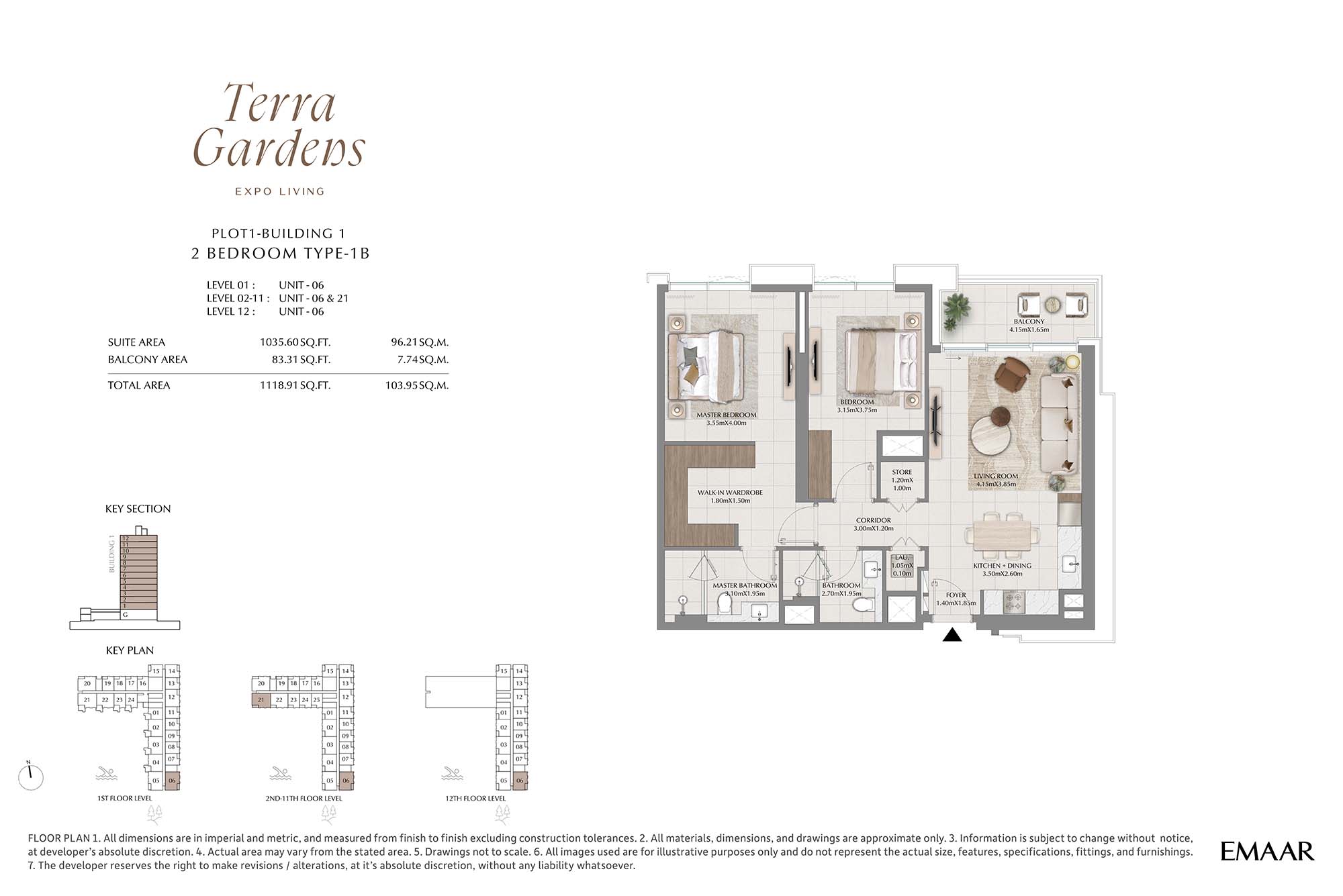 | Buildings 1 | 2 Bedrooms | 1st-12th Level Unit-06 & 21 (Type-1B) | 1118.91 Sq Ft | Apartments |