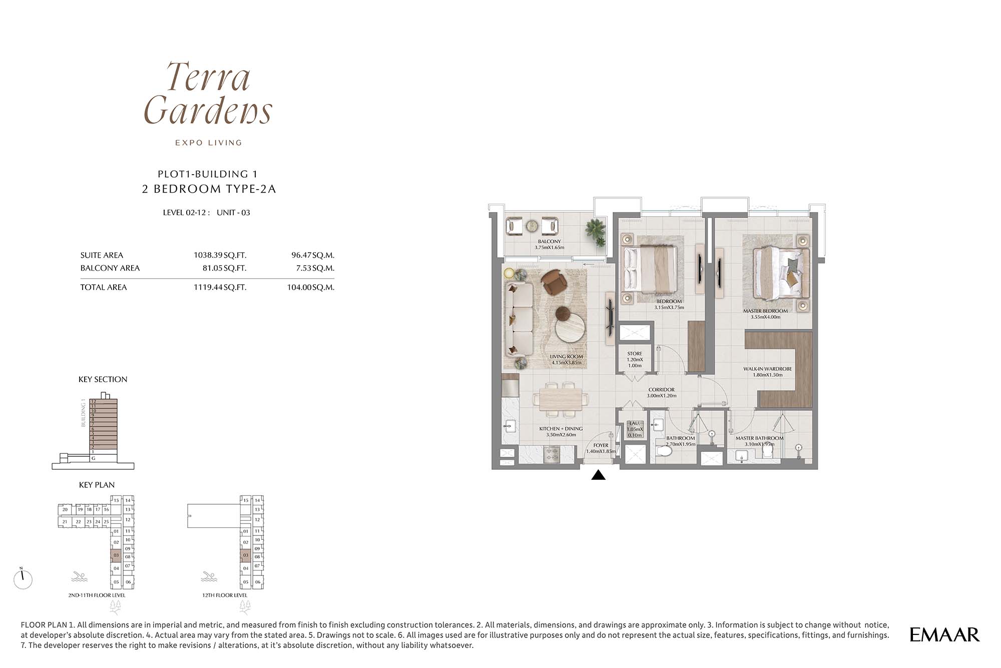 | Buildings 1 | 2 Bedrooms | 2nd-12th Level Unit-03 (Type-2A) | 1119.44 Sq Ft | Apartments |