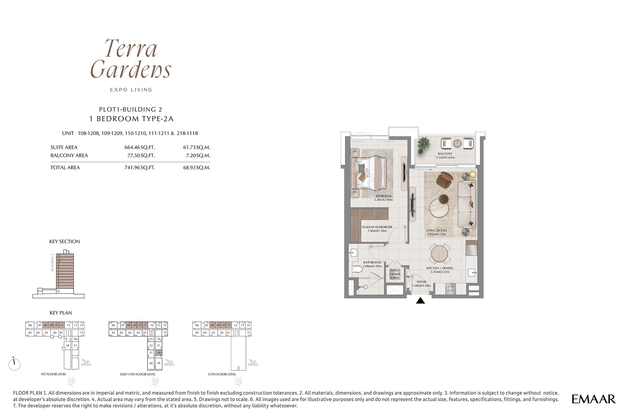 | Buildings 2 | 1 Bedroom | 1st-12th Level Unit 108-1118 (Type-2A) | 741.96 Sq Ft | Apartments |