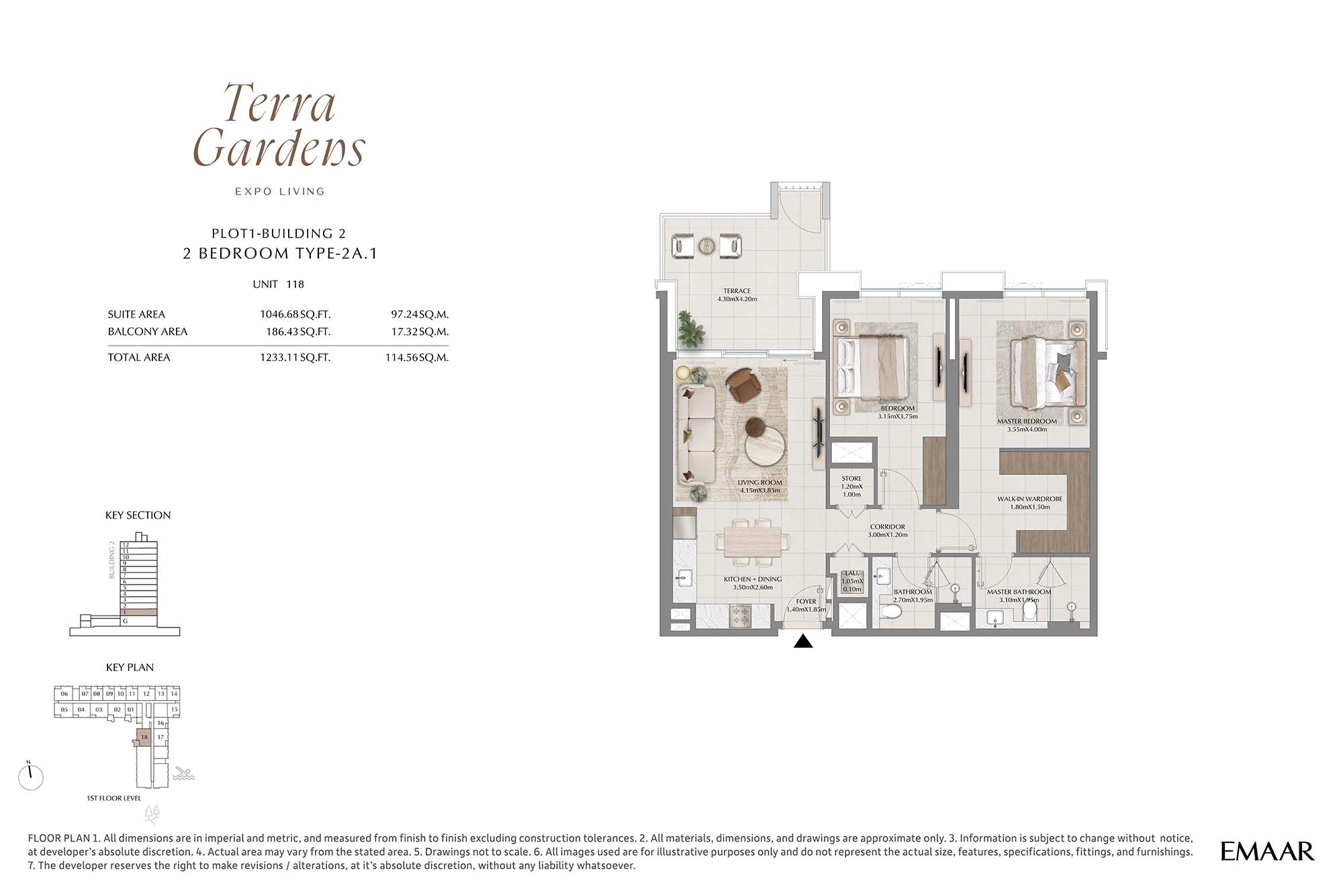 | Buildings 2 | 2 Bedrooms | 1st Level Unit 118 (Type-2A.1) | 1233.11 Sq Ft | Apartments |