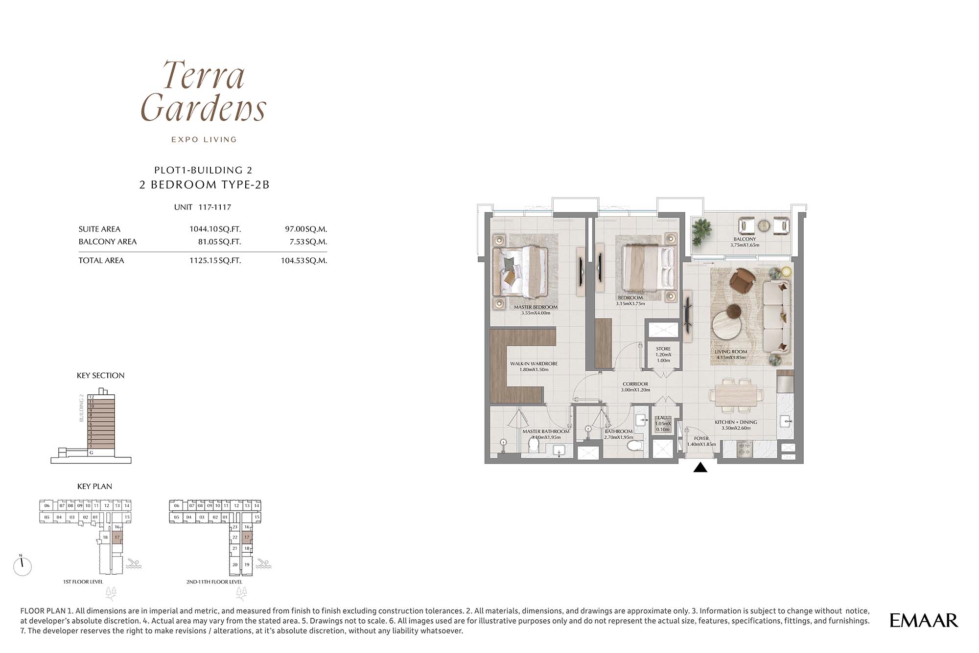 | Buildings 2 | 2 Bedrooms | 1st-11th Level Unit 117-1117 (Type-2B) | 1125.15 Sq Ft | Apartments |