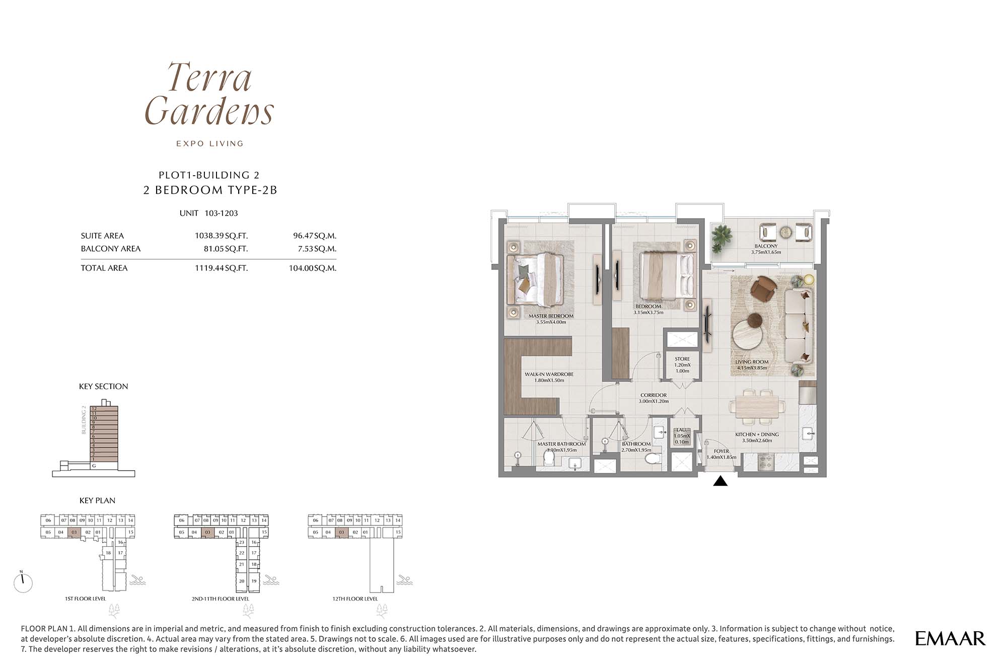 | Buildings 2 | 2 Bedrooms | 1st-12th Level Unit 103-1203 (Type-2B) | 1119.44 Sq Ft | Apartments |