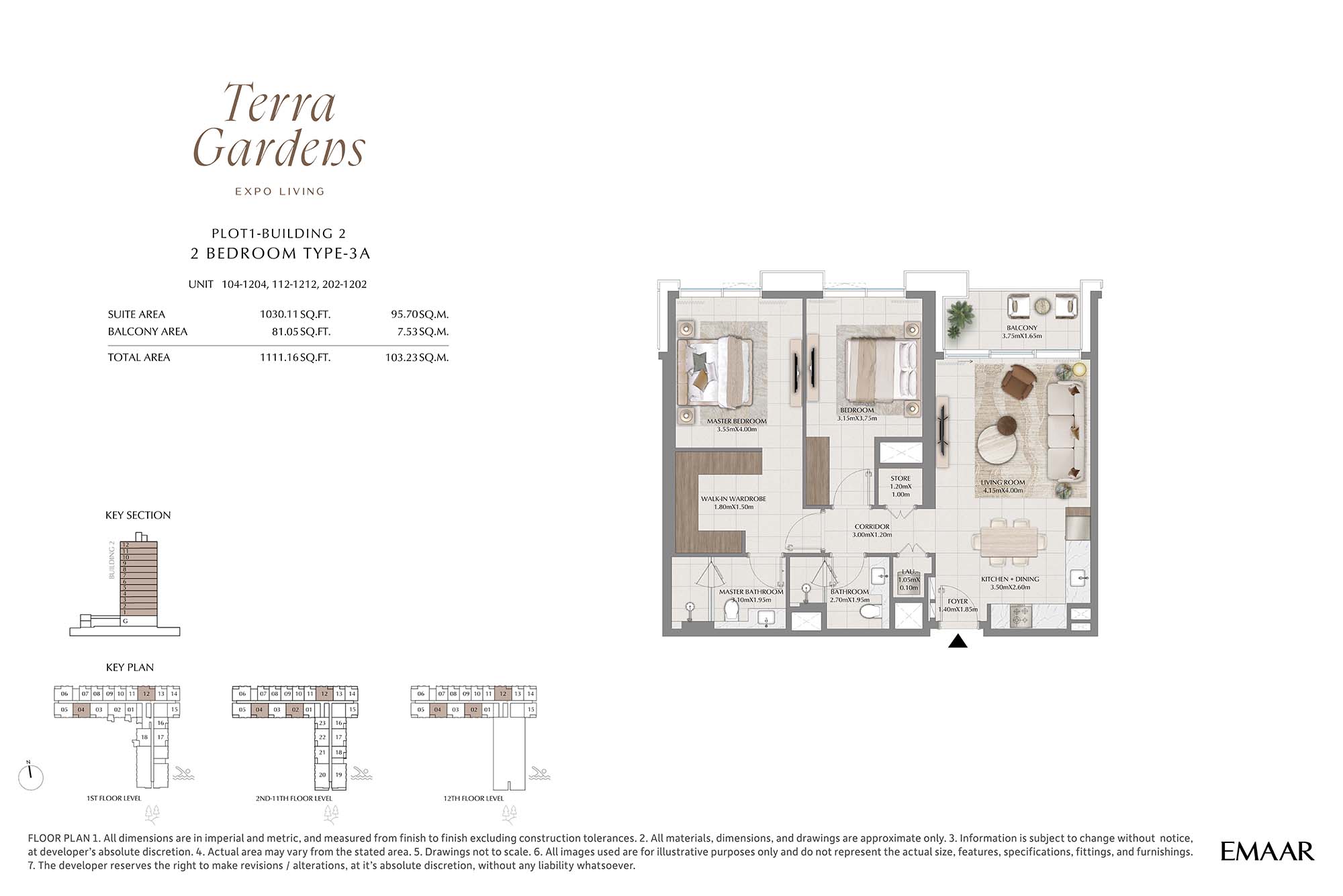 | Buildings 2 | 2 Bedrooms | 1st-12th Level Unit 104-1212 (Type-3A) | 1111.16 Sq Ft | Apartments |