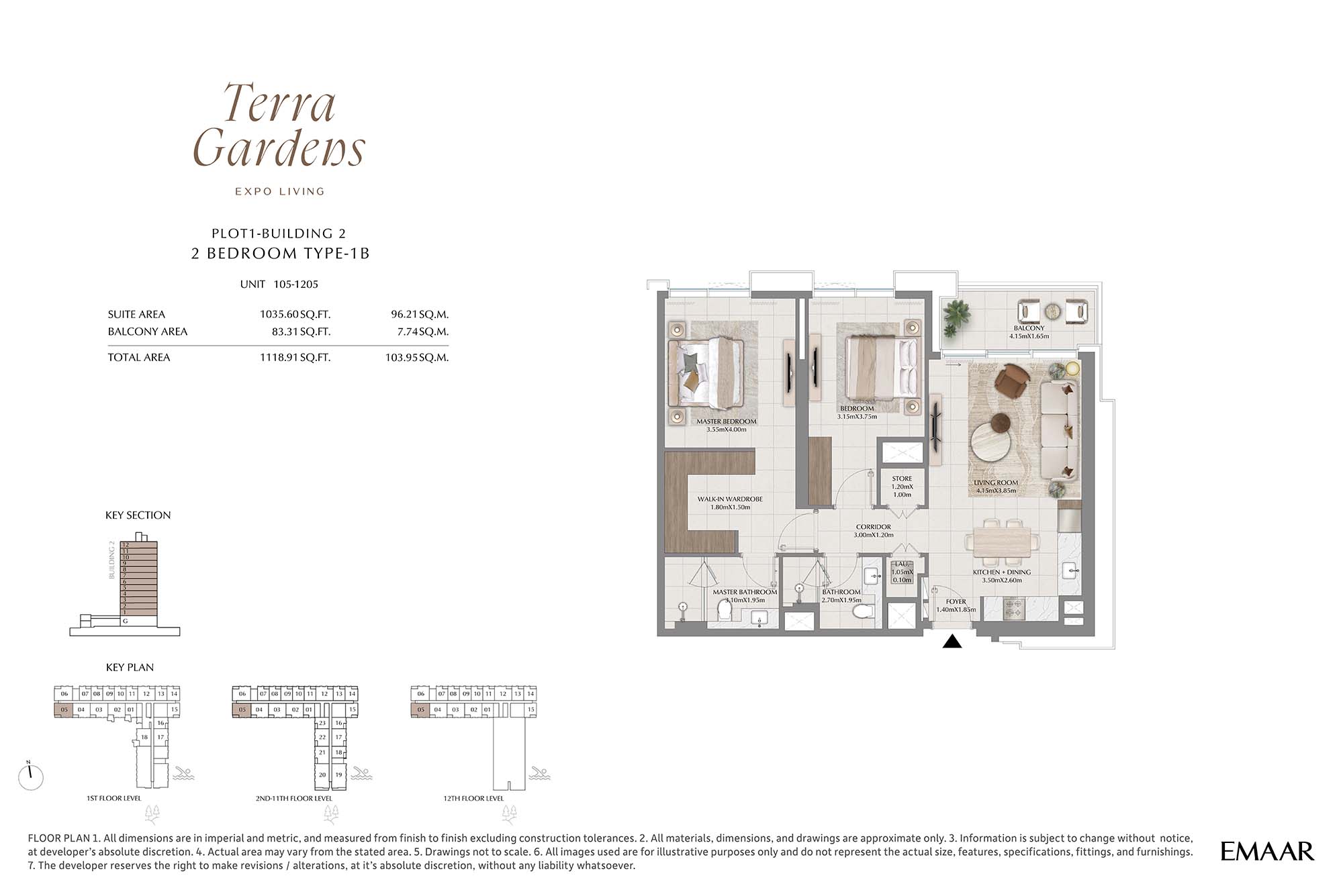 | Buildings 2 | 2 Bedrooms | 1st-12th Level Unit 105-1205 (Type-1B) | 1118.91 Sq Ft | Apartments |