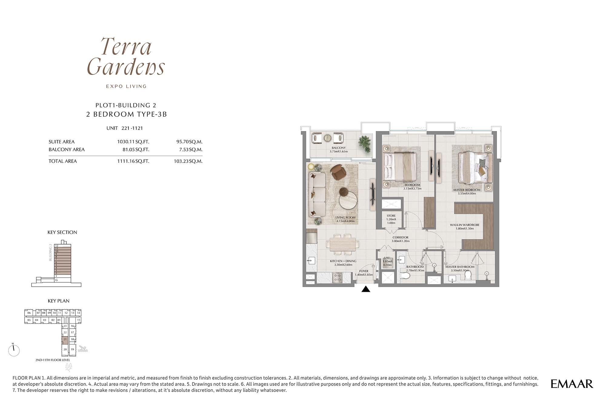 | Buildings 2 | 2 Bedrooms | 2nd-11th Level Unit 221-1121 (Type-3B) | 1111.16 Sq Ft | Apartments |