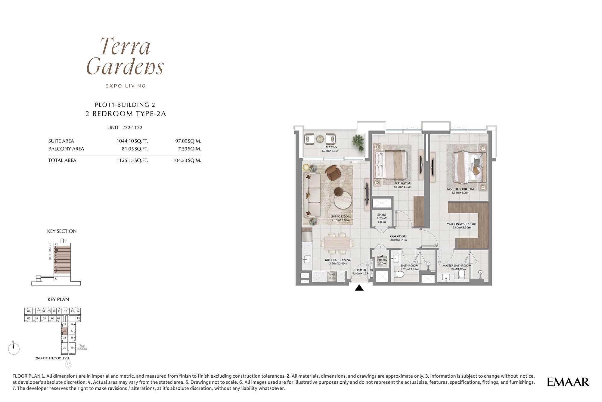 | Buildings 2 | 2 Bedrooms | 2nd-11th Level Unit 222-1122 (Type-2A) | 1125.15 Sq Ft | Apartments |