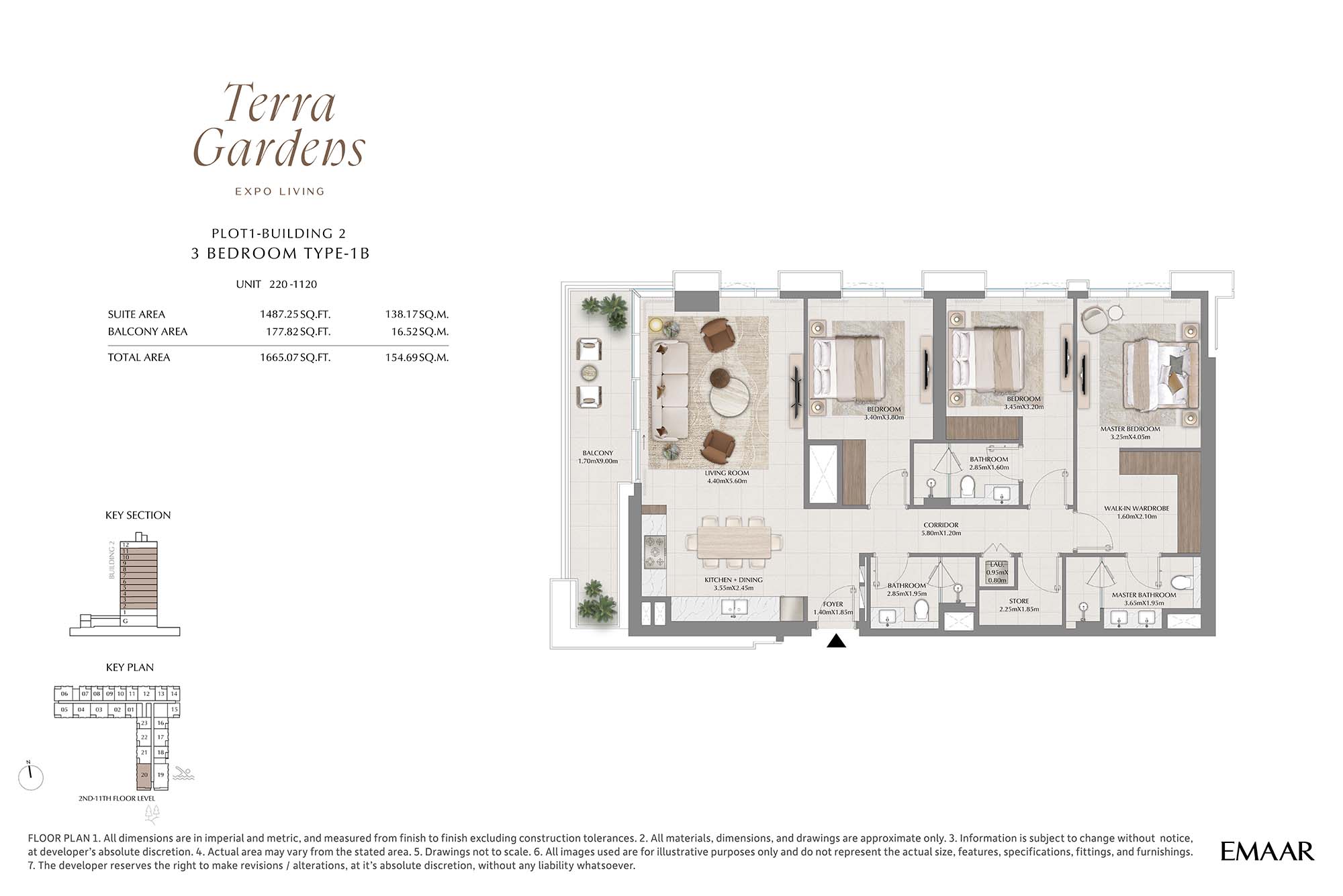 | Buildings 2 | 3 Bedrooms | 2nd-11th Level Unit 220-1120 (Type-1B) | 1665.07 Sq Ft | Apartments |