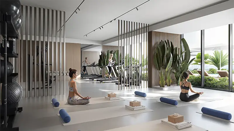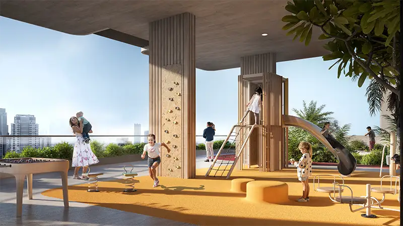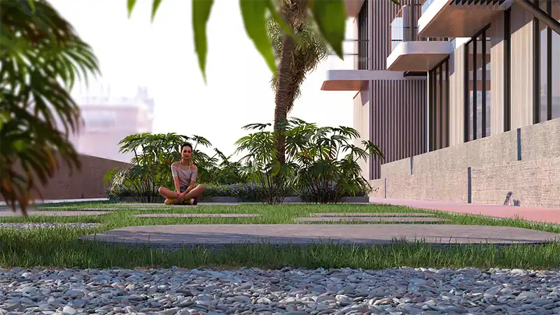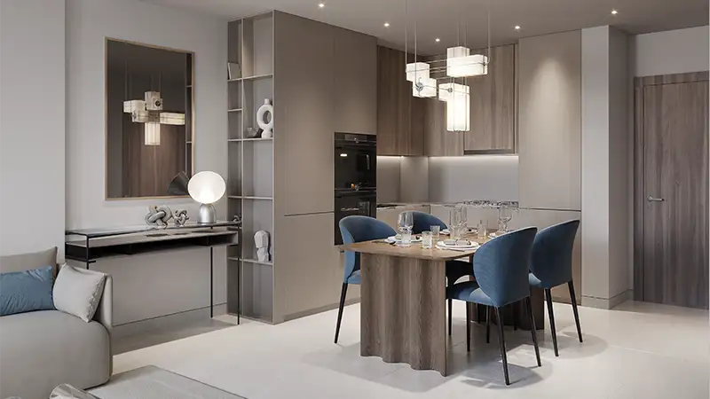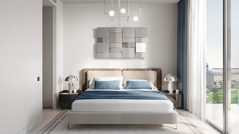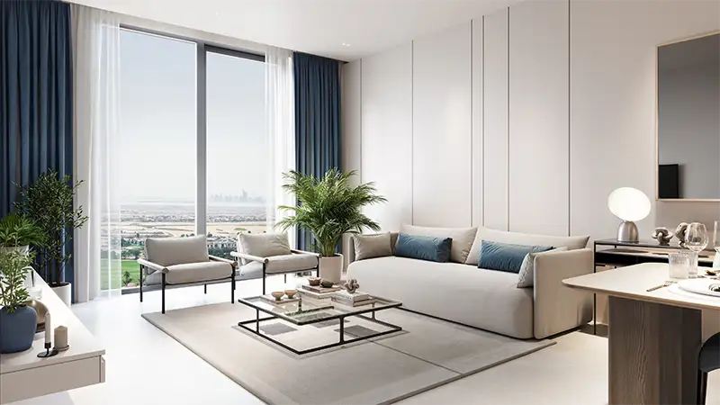 This is a place where tranquility meets design your very own piece of paradise. The interiors are finely designed with soft grey palettes and neutral shades that speak to a sense of calm and class. Every detail has been designed to create a low and luxurious vibe that doesn’t scream but whispers sophistication. As sunlight streams through full-height windows, your eyes are drawn outward to the peaceful community below, the lively podium with its inviting pool, and the awe-inspiring presence of the Dubai International Cricket Stadium in the distance.