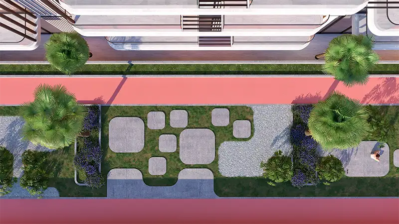 - A modern architectural gem blending elegance, functionality, and prime connectivity in a lush urban setting.