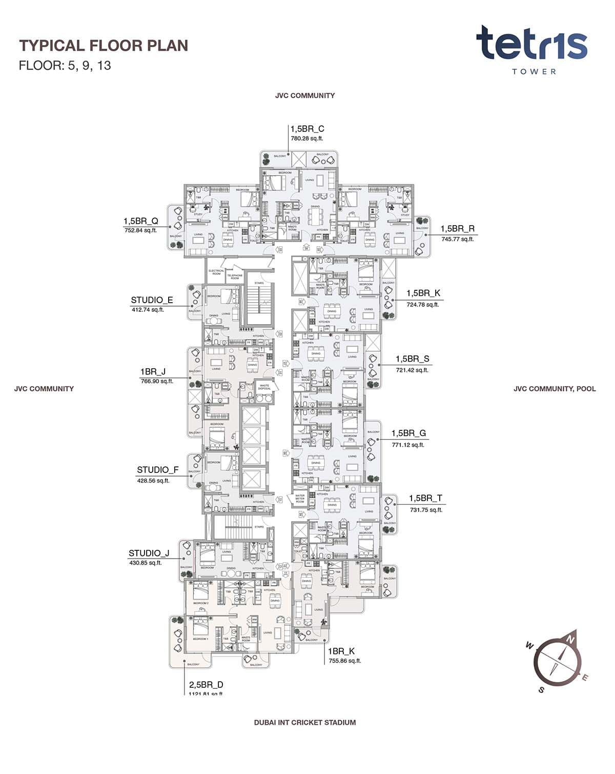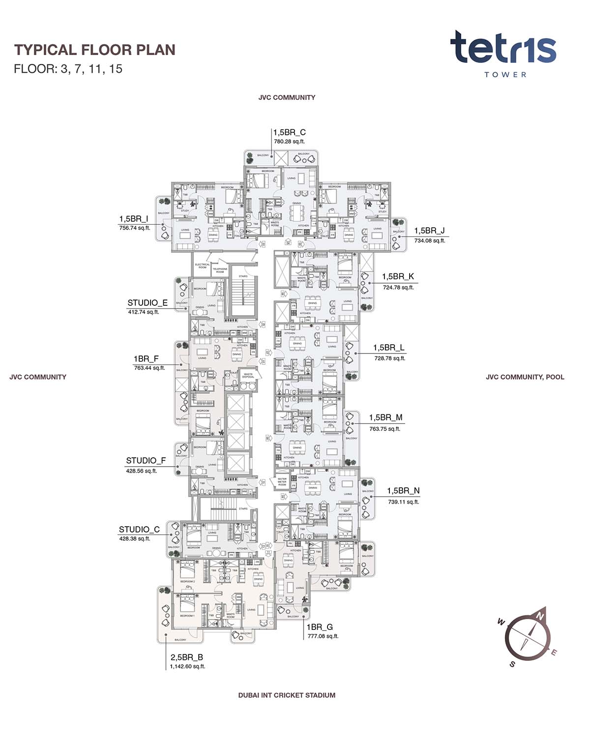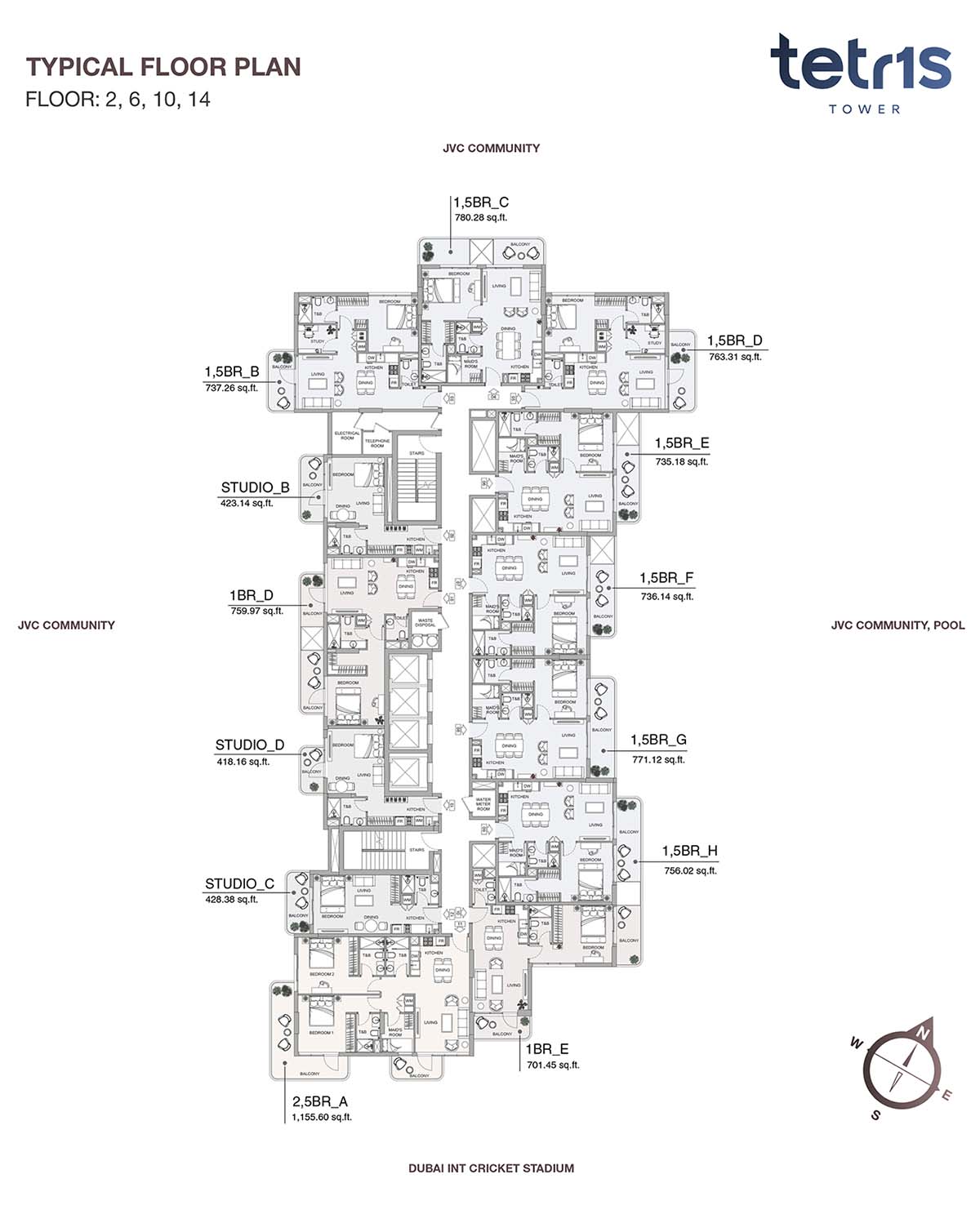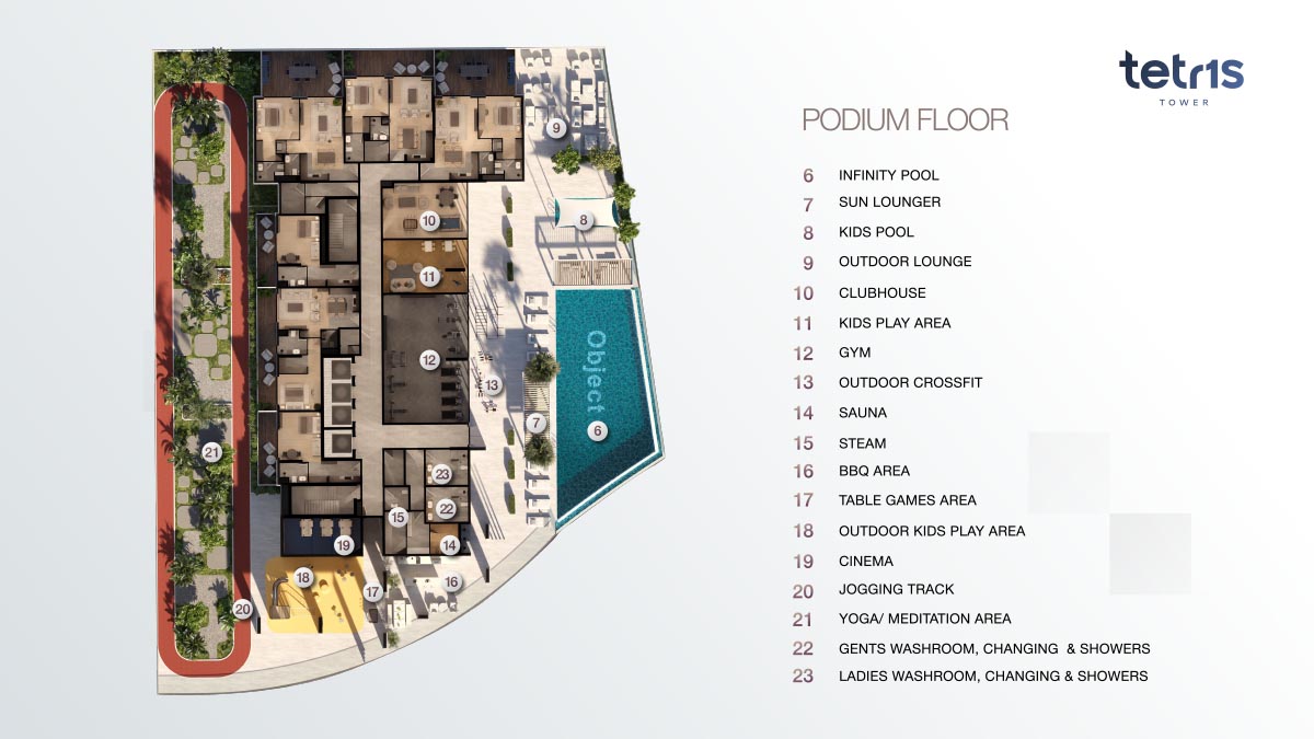 Tetr1s Tower is a 19-storey residential building, designed with modern floor plan of studios, 1 & 2-bedroom apartments in JVC. It features various types of homes that makes their residents to enjoy their life with comfort and luxury. Best quality of materials is used to design the fine interior with quality finish and smart technology. It creates airy and peace atmosphere inside. Homes are designed in such a way that each and every corner is utilized smartly. Ample storage space, modern appliances, furnished rooms and quality materials are the main focus of the developer.
