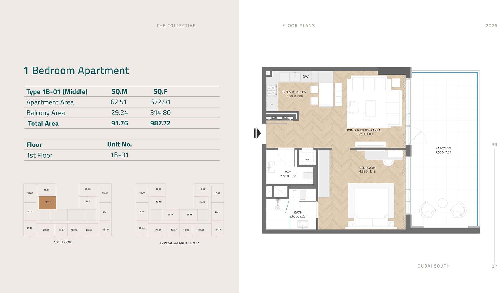 The Collective Residences provides a floor plan that is designed with various different tyles of units in Dubai South. It offers open and spacious layouts with the best quality of floors. Architectures are of best quality and the premium interiors are done. Rooms are with maximum spacious storage facility with attached washroom. With wide and spacious rooms that are designed with spacious storage area. Rooms are very spacious that are equipped with wide and large windows. The dinning space area and living room is connected well so that there is smooth movement of host and guest both. Inside the floor the wall and façade is of unique color just like earthy tone. Automatic appliances and equipment are utilized in the kitchen for bringing more comfortability.