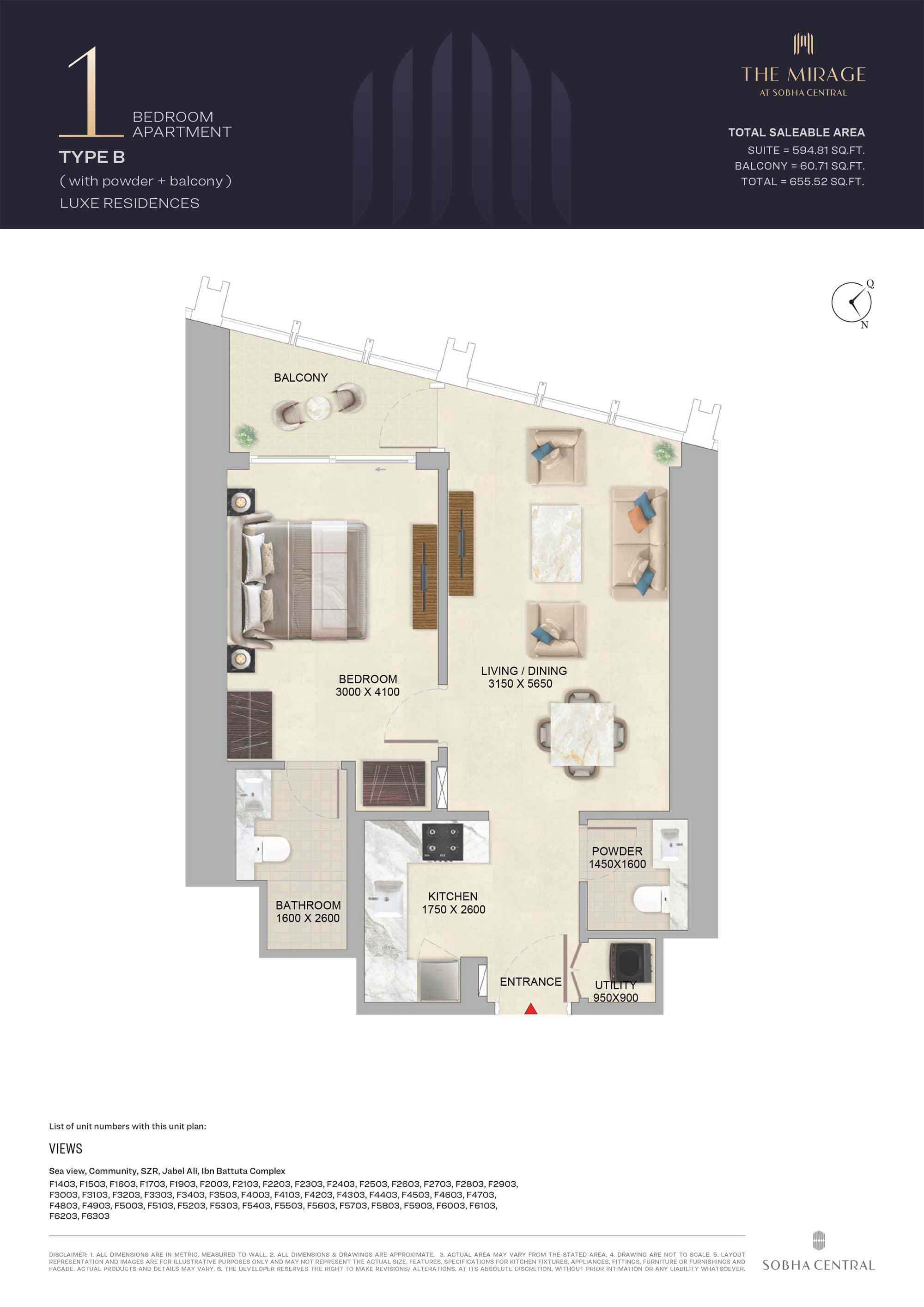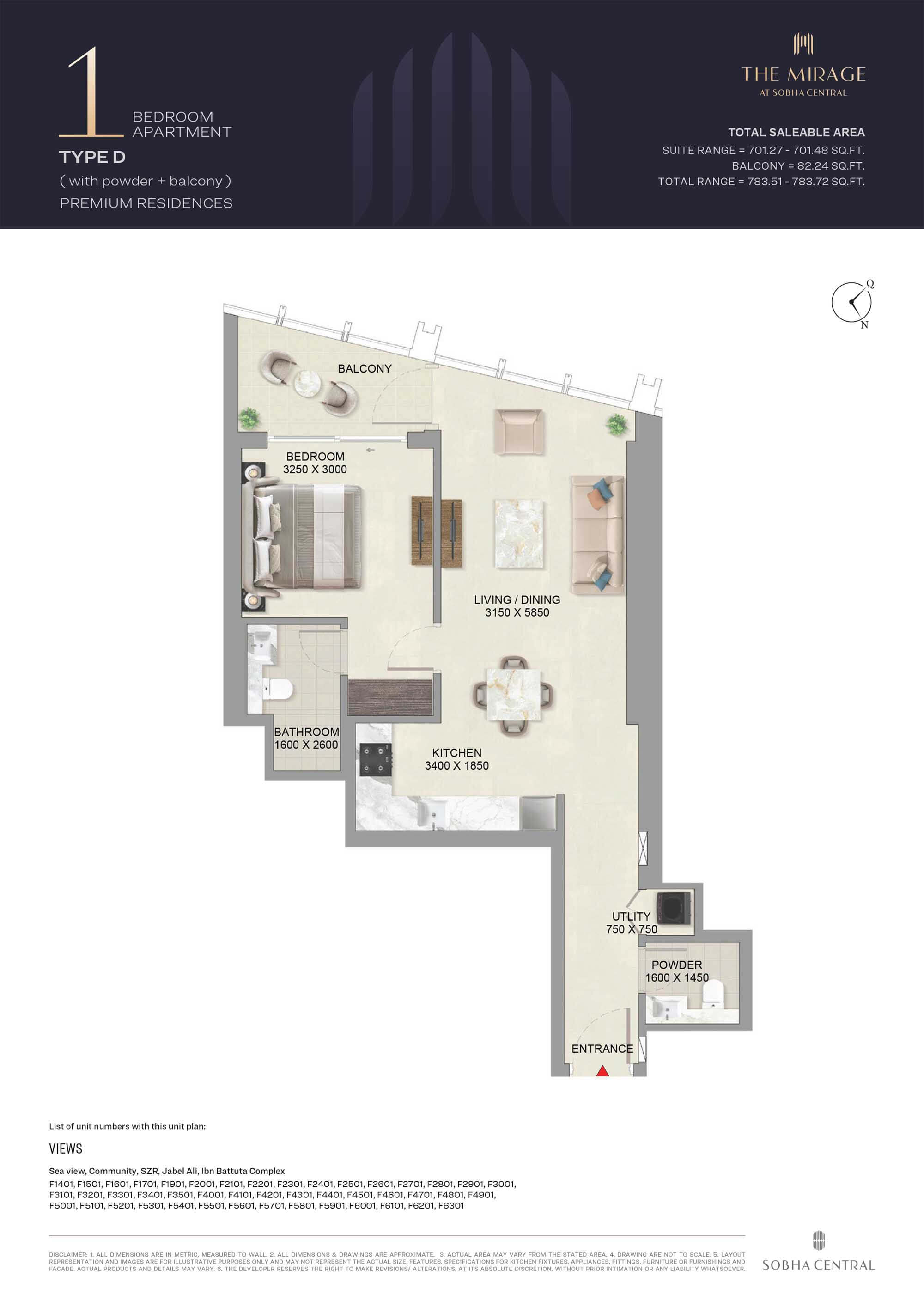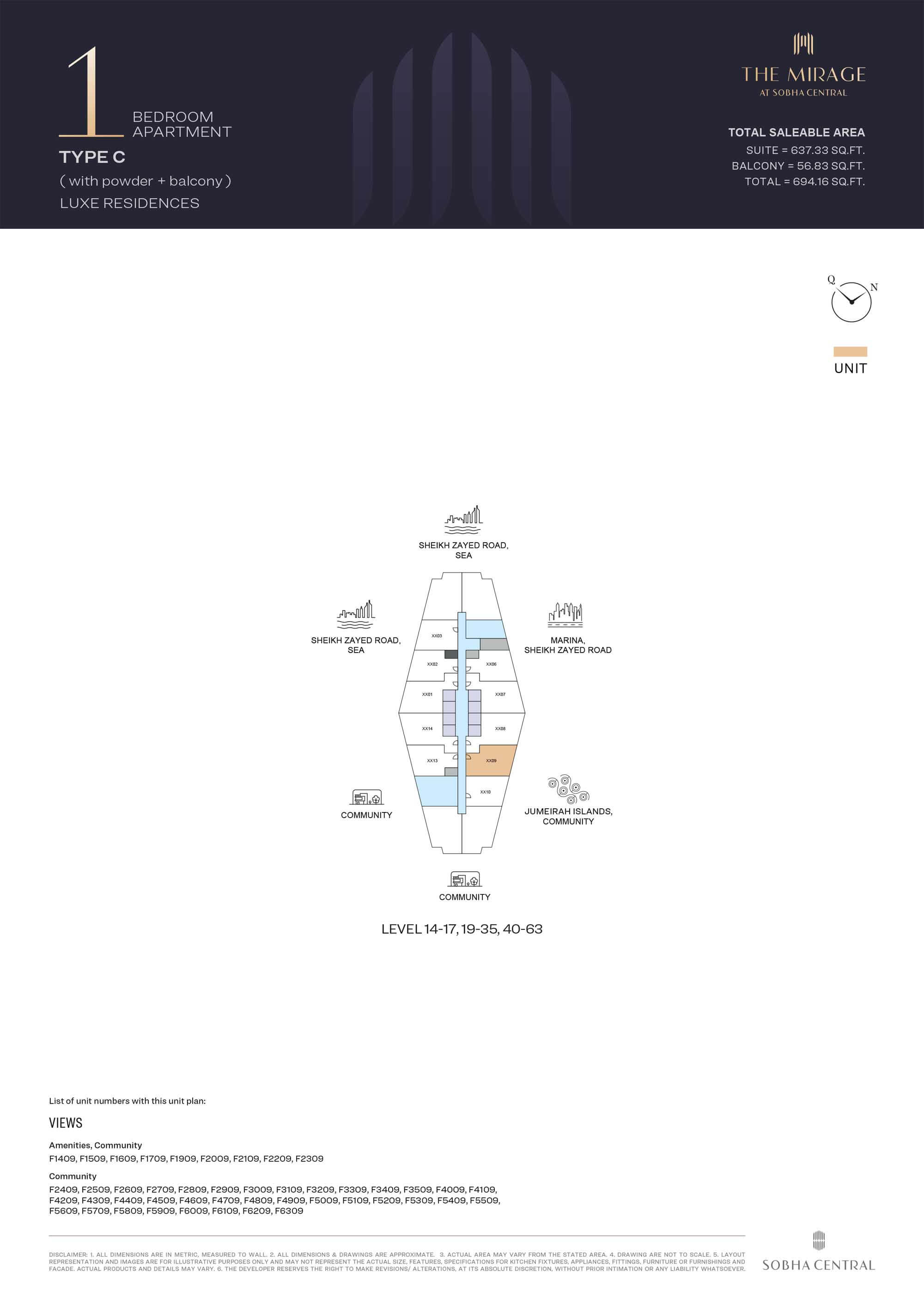 The Mirage by Sobha Group is designed with exceptional floor plans having a range of 1 and 2-bedroom apartments at Sobha Central community on Sheikh Zayed Road. The 63-storey high-rise tower is having carefully designed layout along with breathtaking views of Dubai’s skyline from each of the units. Every house is having cozy bedrooms equipped with closets, open style living area, bathroom fitted with Italian tiles and floor-to-ceiling sized glass windows offering ample natural light and ventilation.
