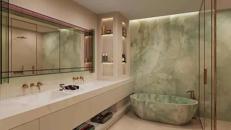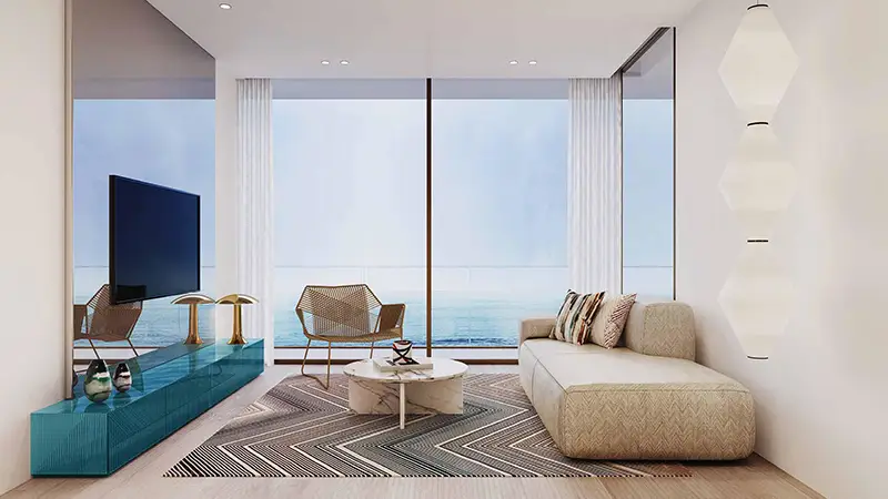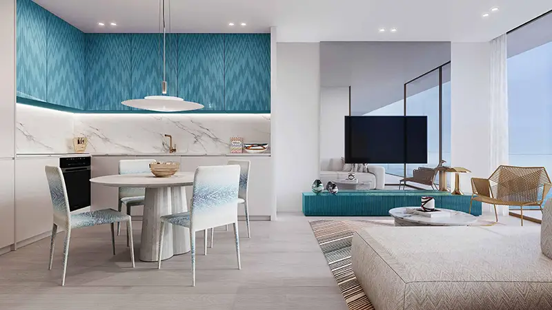 Trio Isle B, a new residential unit in Al Marjan Island, Ras Al Khaimah by Durar Properties, offering 1-to-3-bedroom apartments. The interior of this project is done by Missoni. This iconic Italian luxury brand celebrated for its distinctive design aesthetic and commitment to craftsmanship We are proud to unveil the second tower of one of Ras Al Khaimah’s most esteemed developments, extending across 240 metres of the island’s pristine coastline. Ideally positioned at the heart of the project, residences in this tower offer sweeping views of the Arabian Gulf, the island’s natural landscapes, and the city skyline.