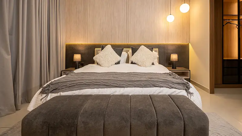 Crafted with precision, each residence is adorned with nature-inspired, high-quality materials that create a sense of serenity and luxury. The generous use of glass throughout the building invites an abundance of natural light, ensuring the interiors are both airy and bright, while allowing residents to remain intimately connected to the beauty of their environment. The interiors, designed to offer a perfect balance of comfort and privacy, cater to those seeking a refined sanctuary that combines practicality with indulgence.