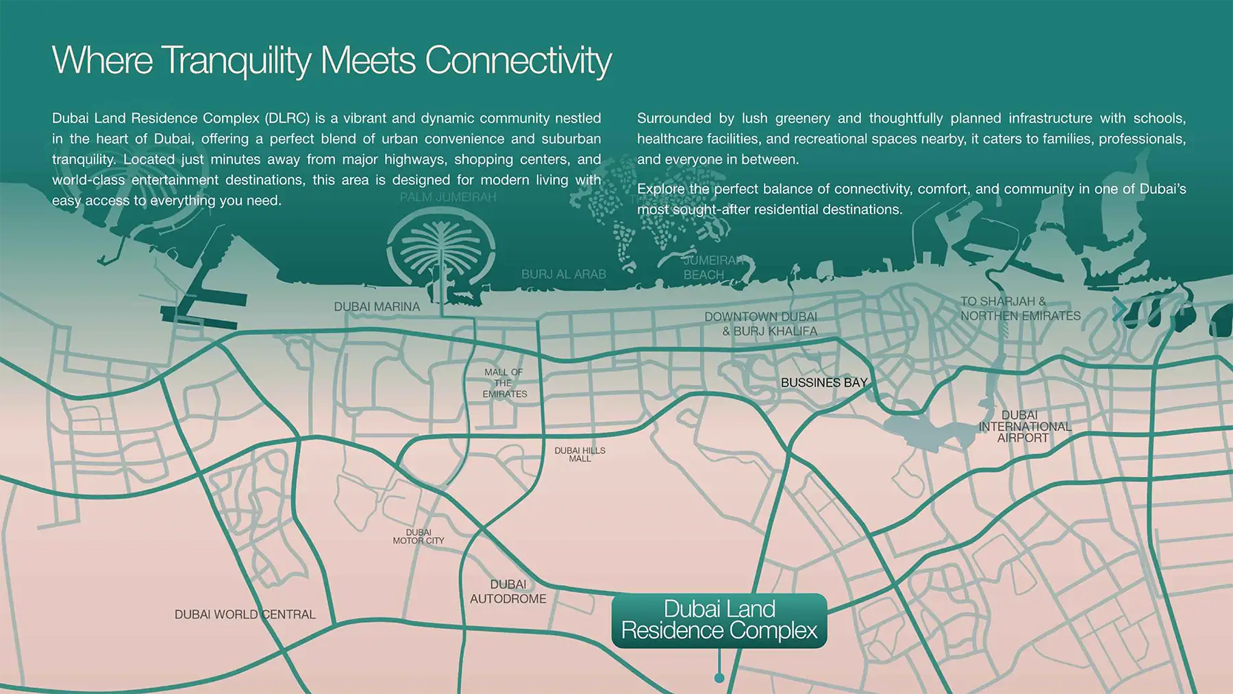 Verdan1a 2 located at Dubailand Residence Complex (DLRC) planned setting that places residents close to Dubai’s most prominent destinations. While keeping a sense of calm and comfort. The community also offers easy access to the city through Dubai Al Ain Road and Emirates Road. Strategically located property provides an easy access to Dubai Silicon Oasis, Dubai Outlet Mall as well as offers great shopping, dining and entertainment experience. With convenient access to shopping, dining and major business districts, it is the perfect home for professionals and families who want to enjoy living a serene and peaceful lifestyle while still being close to town.