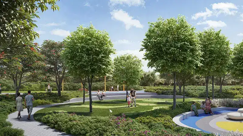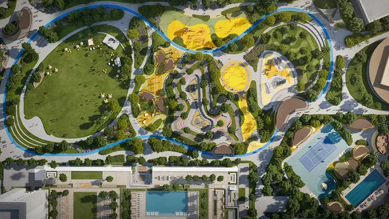 - A vibrant community setting designed for social interaction, outdoor wellness, and family-friendly living, adjacent to the expansive Dubai Hills Park.
