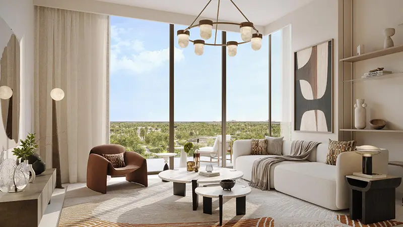 - Floor-to-ceiling windows and expansive balconies offer sweeping views of Dubai Hills Park and the dynamic Dubai skyline.