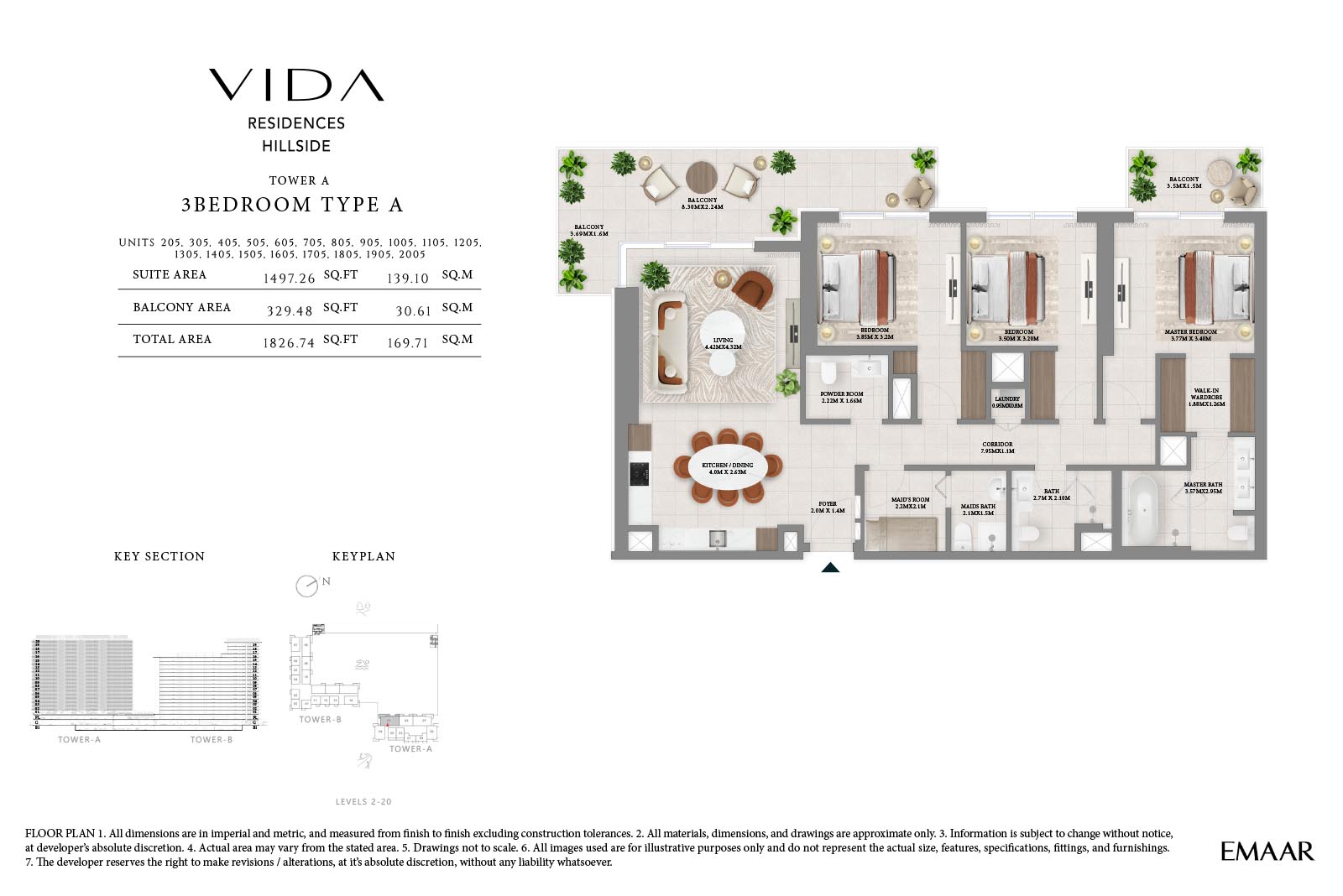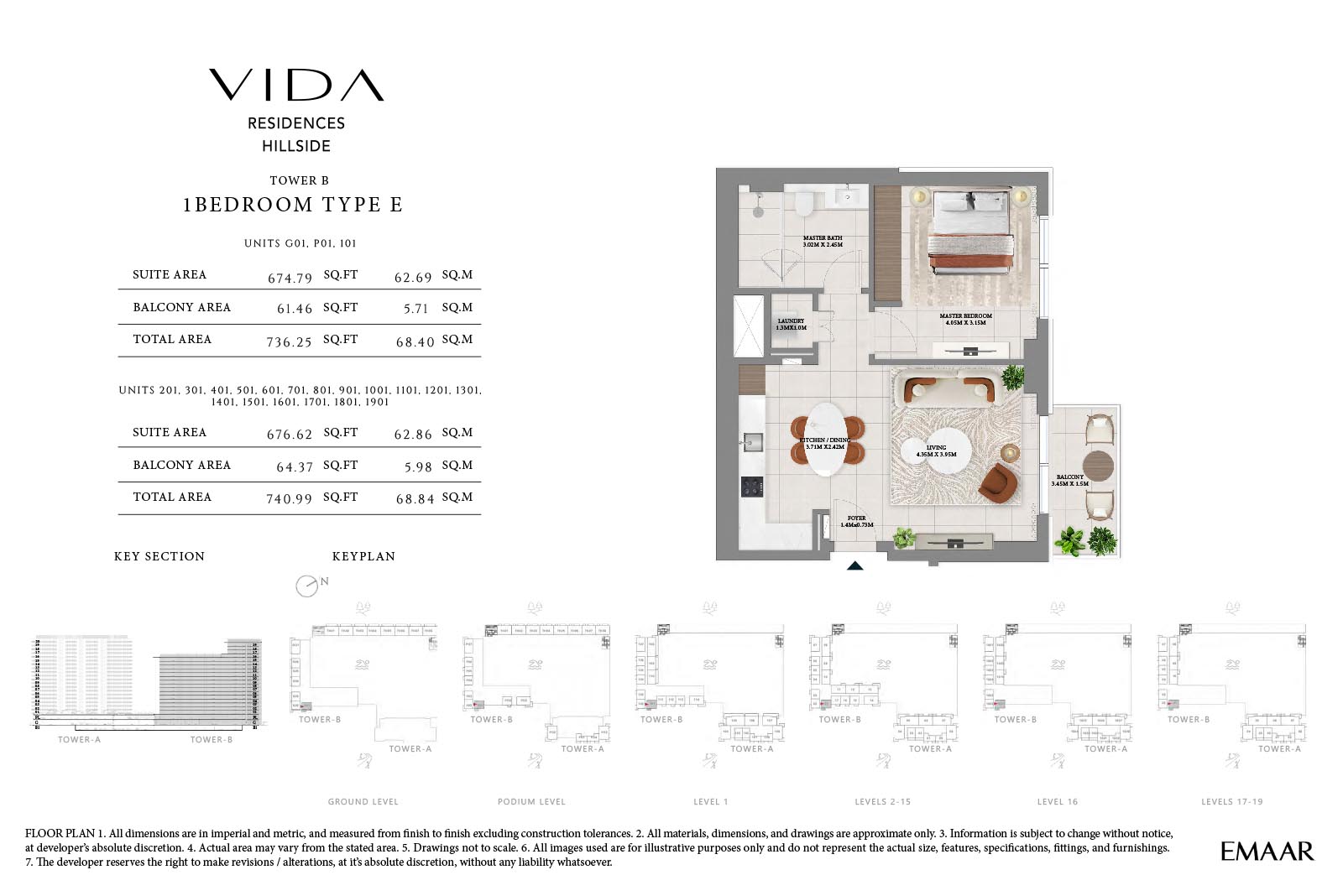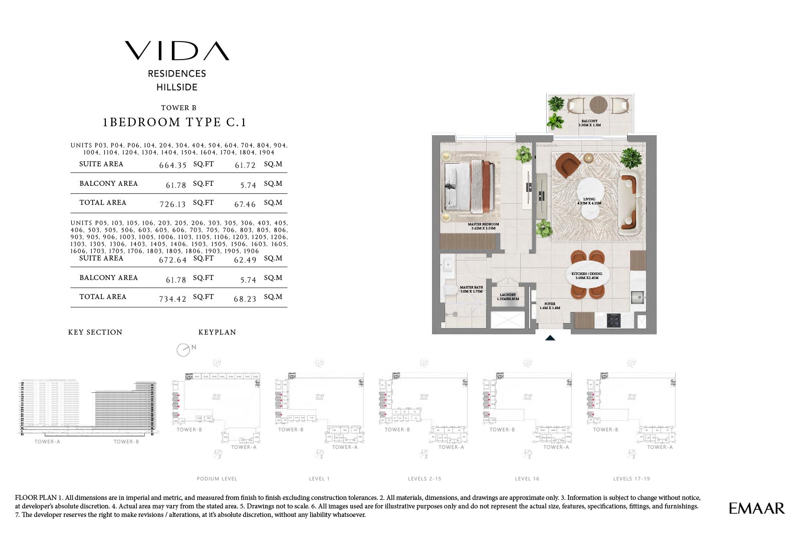 The floor plans at Vida Residences Hillside features multiple layouts with 1, 2 and 3-bedroom apartments and a few 3-bedroom townhouses. All units are designed using every inch of space, filling them with gently natural light and providing privacy, so that the outside is seamlessly combined with the living area. Thanks to the floor-to-ceiling windows, each area enjoys a view of the park or skyline which adds extra freshness to every room. Balconies and terraces give people a sliced bit of the outdoors to use however they like.