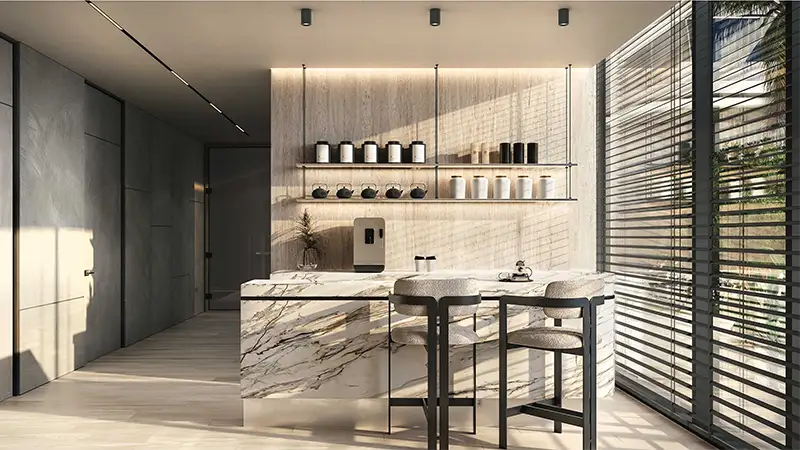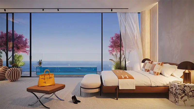 With breathtaking ocean vistas and sunlight streaming through expansive glass walls, each residence captures the soul of serene living. Each and every corner is crafted with great attention, these homes celebrate artistry, comfort, and elegance. Peaceful balcony pools and bespoke interiors offer a living experience that feels eternal.