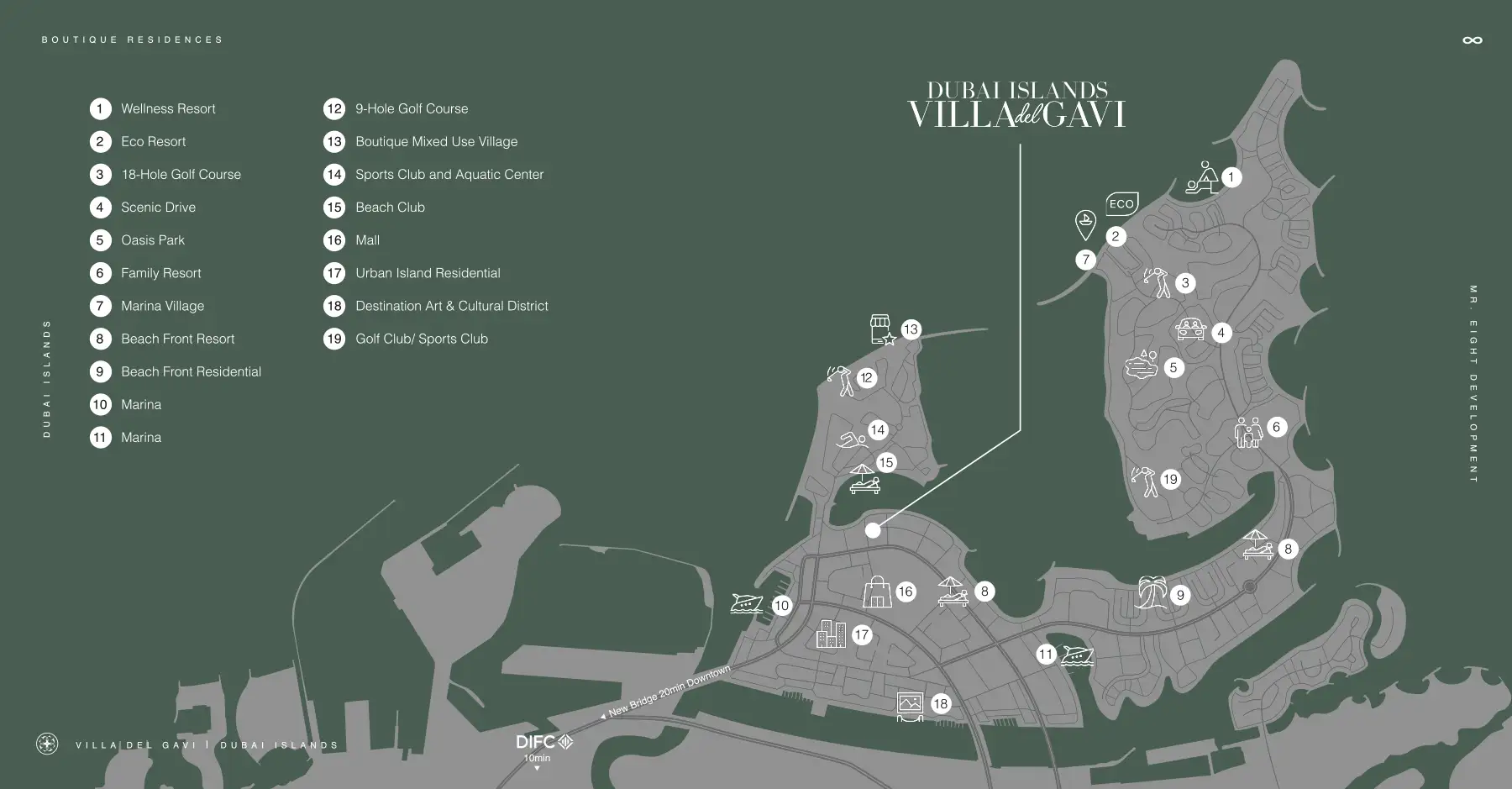 Villa del GAVI is master planned by Mr Eight Development that focus on best community life with best amenities and convenient access. Whole community is located within spacious green landscape with high towers having all the amenities. It features open space for walking, space for fitness, play areas identified for adults and kids, jogging trails, mini golf area and many more. This project is designed in such a way that every resident can have coastline view with sufficient sunlight inside and airy atmosphere. This locality has direct access to all the key areas and one can easily reach to all the basic needs like hospital, schools, worship area, metro station etc. The project offers a resort-inspired design having private beachfront access. It offers sustainable urban planning principles with high energy saving technique according to the Dubai’s environmental policies.