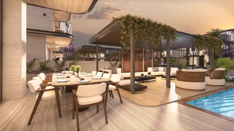 - It is loaded with a range of modern amenities such as water lounges, private terraces, modern fitness center, outdoor yoga spaces, clubhouse, kids' play area, outdoor cinema along with green surroundings.