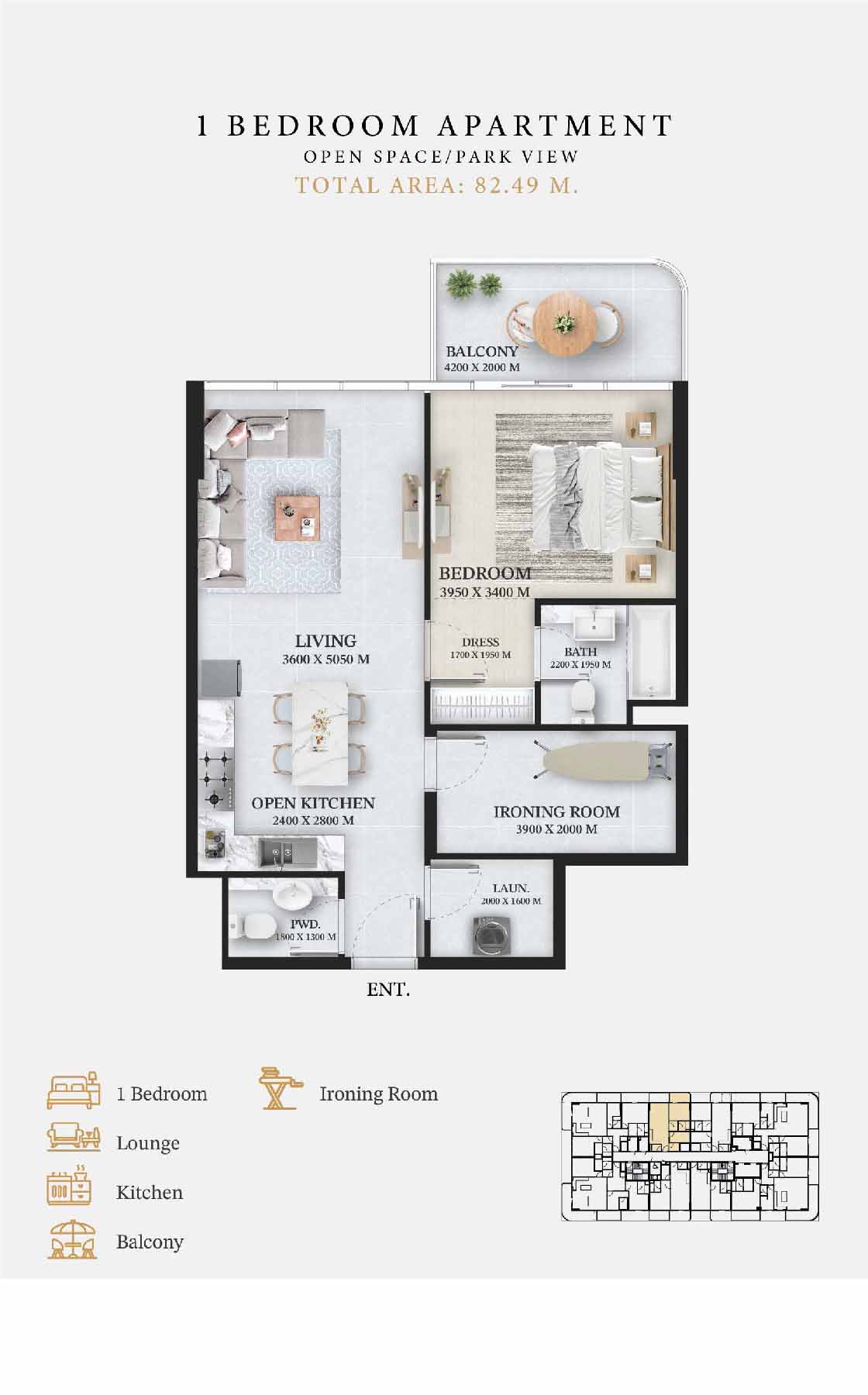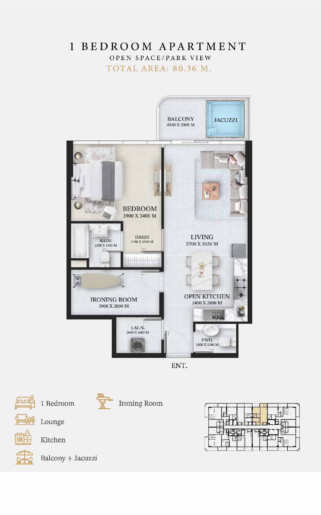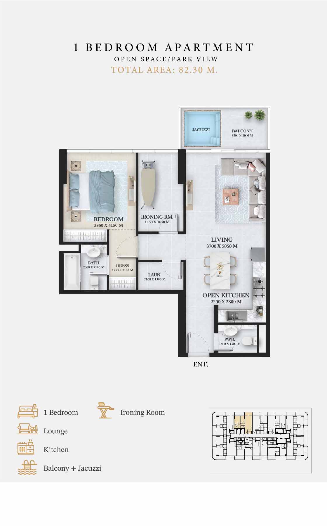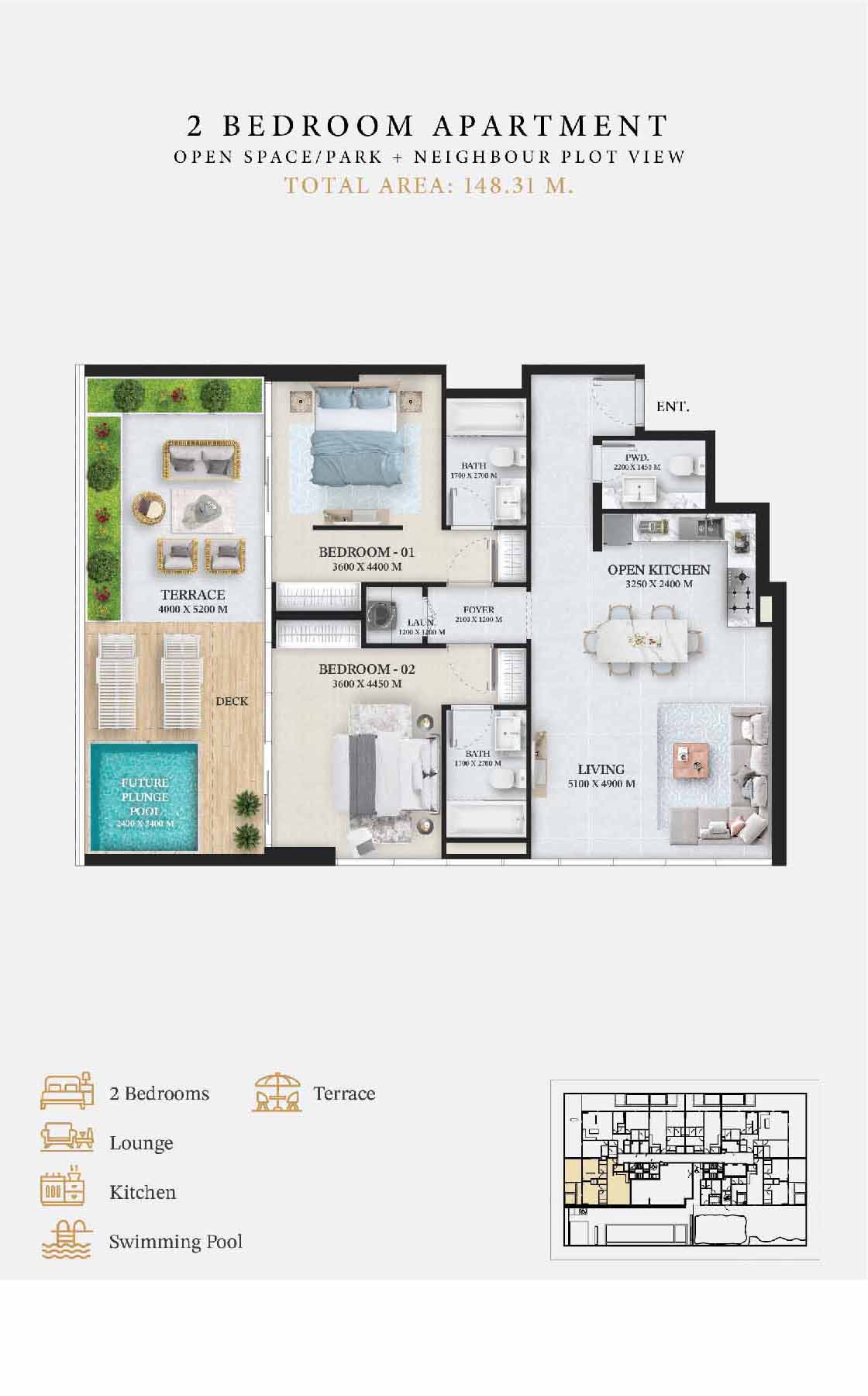 Wellington Ocean by ANK Developers is offering uniquely designed floor plans in 1 and 2-bedroom apartments and 3-bedroom duplexes. It comes with spacious design with well-planned interiors and having scenic views of island and ocean. Each unit is having floor to ceiling glass windows to offer ample natural light and ventilation and it has modern kitchens equipped with automatic appliances, smart home features and built with best quality materials. The builder has planned to offer marvelous apartment with grand aesthetics which ensure to enhance the overall living experience.