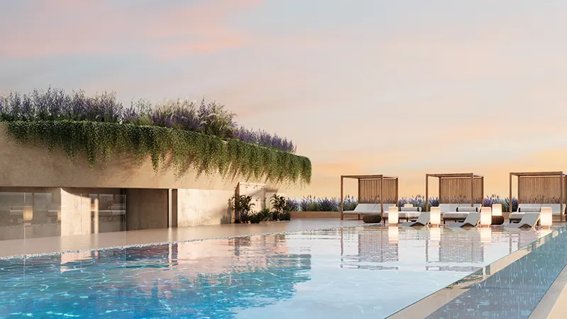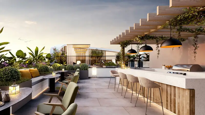 - Luxurious resident amenities, including an infinity pool, rooftop BBQ areas, and landscaped gardens.