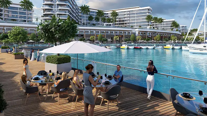 - The waterfront contains high-end shopping, dining and entertainment establishments which include a universal yacht club, an upscale shopping mall, and a deluxe hotel.