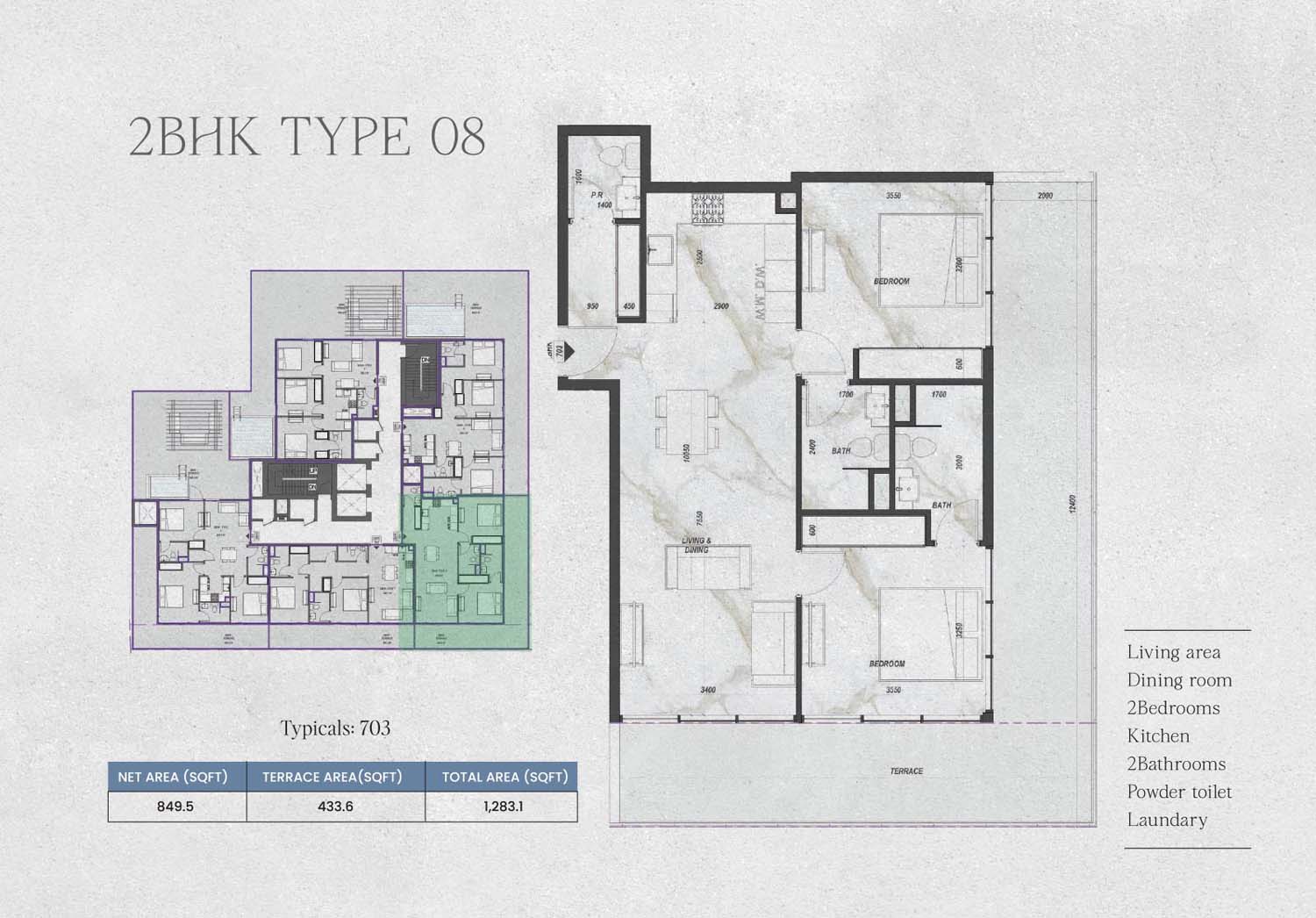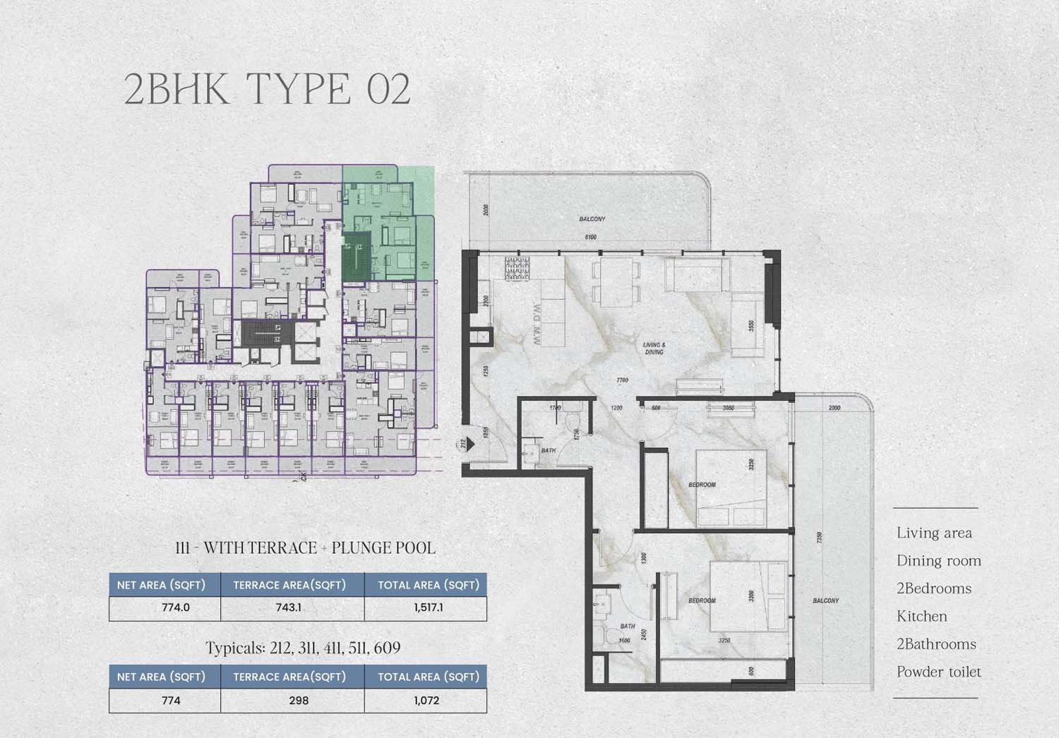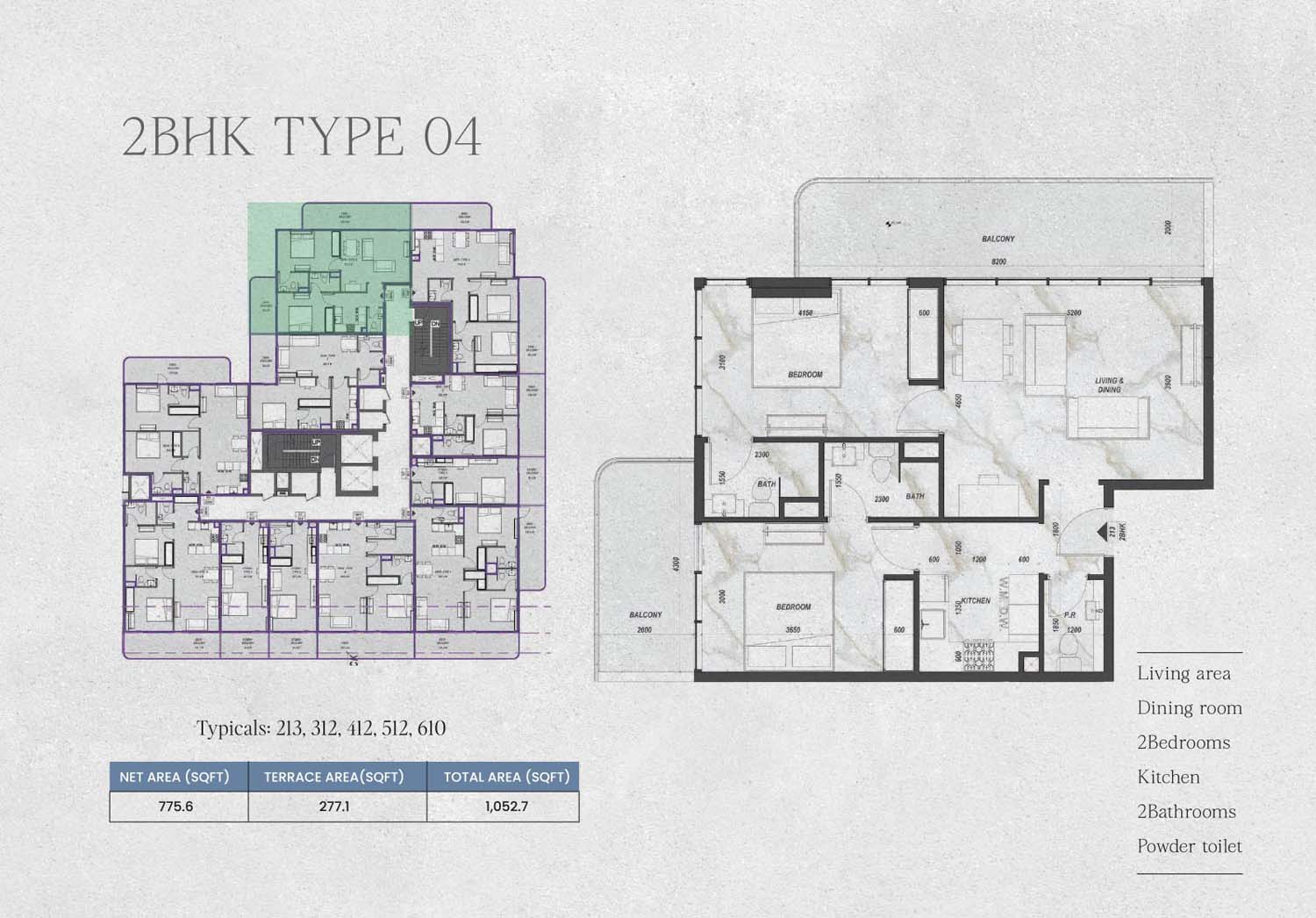 Residents enjoy unimpeded views and plenty of natural light with the spacious balconies and generous windows, while open floorplans create a smooth transition between living, dining and kitchen space. The layouts give priority on the comfort, personal space and aesthetics of the homes as every home is perfectly mixed with style and usability.